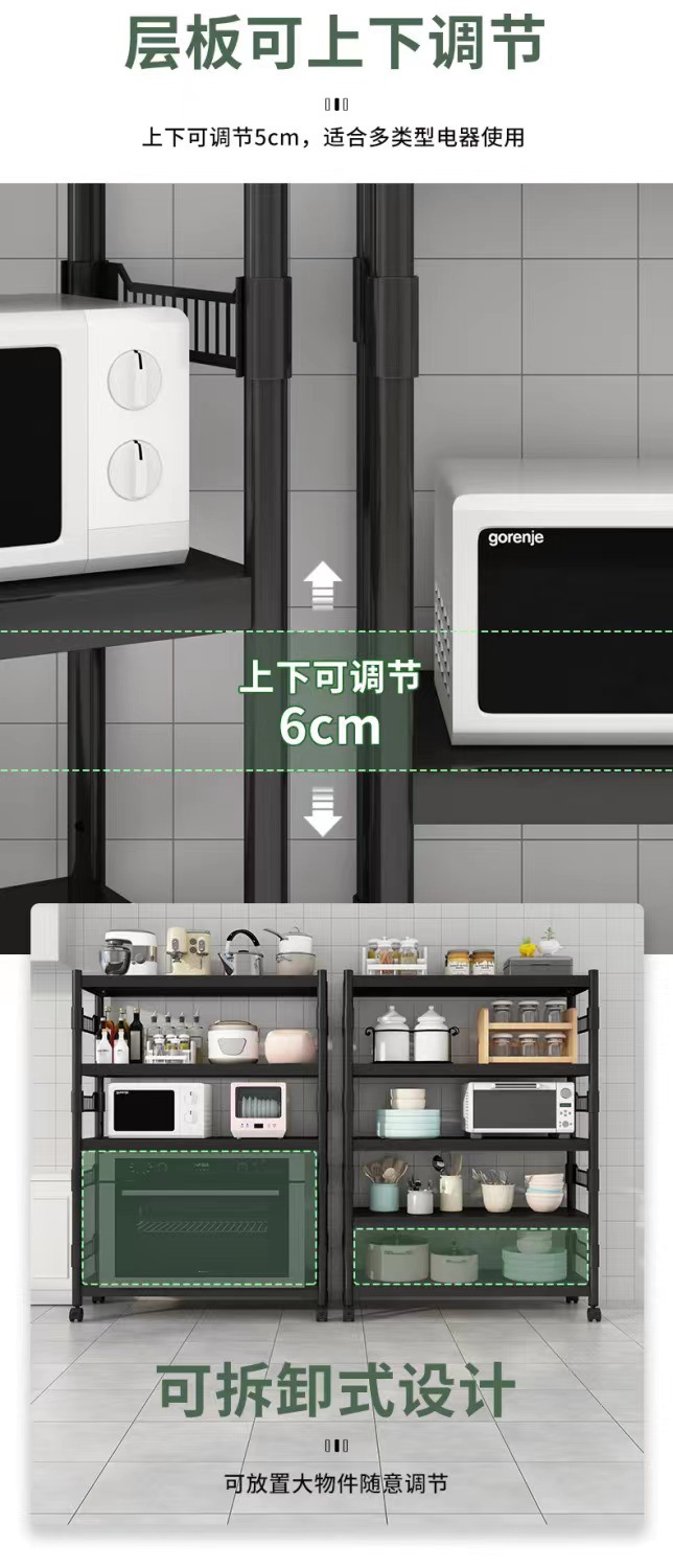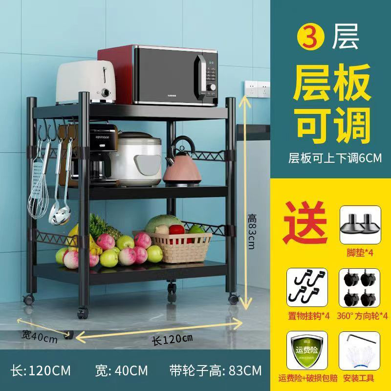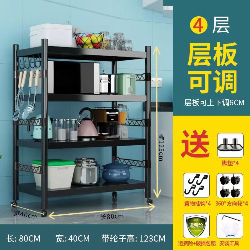 [울타리] 신카본 스틸 키친 랙 수납 랙 블랙 선반 가정용 조절 선반