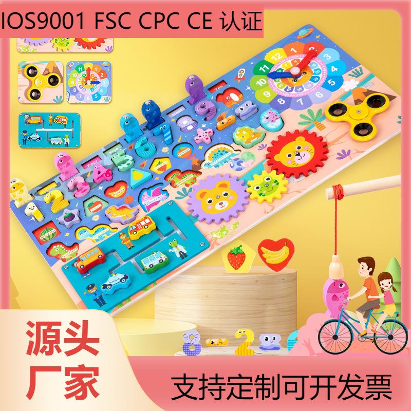 나무 어린이 올인원 그래픽 낚시 빌딩 블록 장난감 교육 조기 교육인지 바쁜 보드 퍼즐 로그 보드스토어 가기