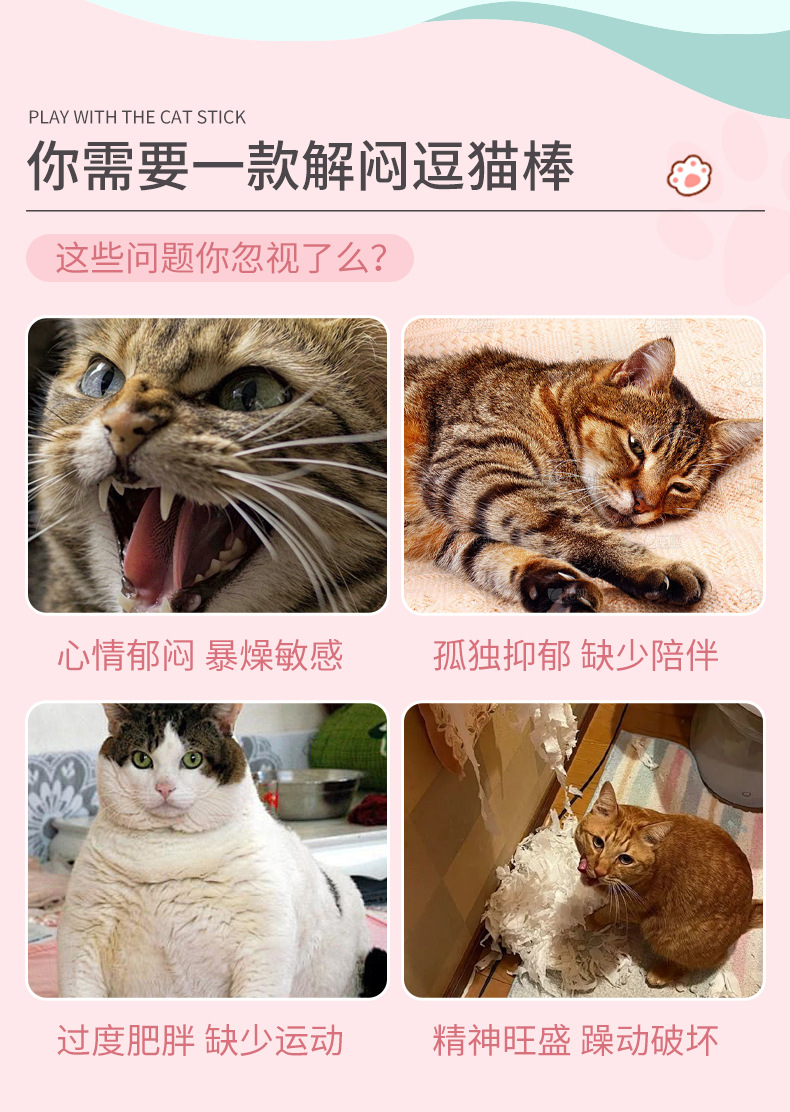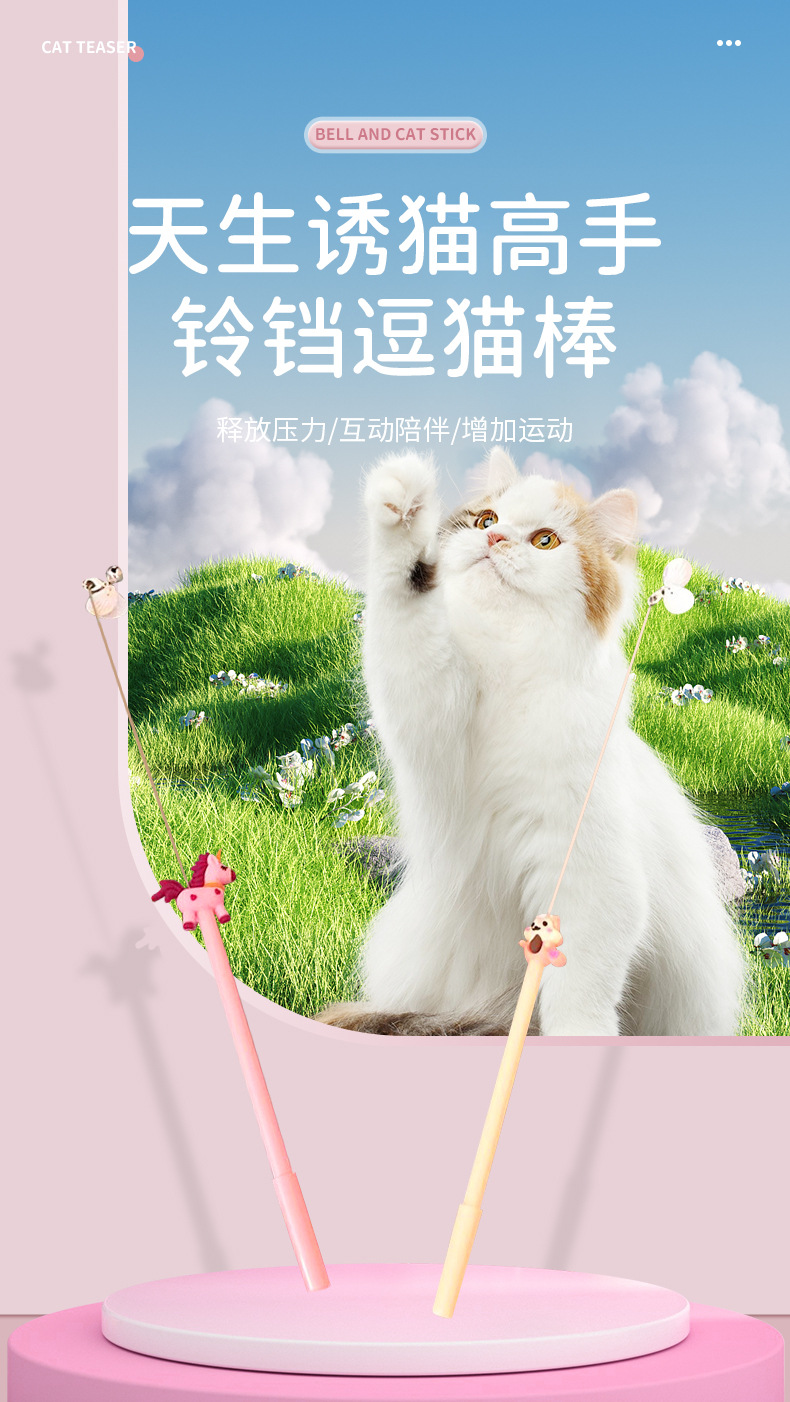 멩시도 고양이 인터랙티브 장난감, 털공 장난감 막대, 물림 방지, 벨 포함, 새끼 고양이 씹기 및 사냥놀이용, 애완동물 장난감스토어 가기