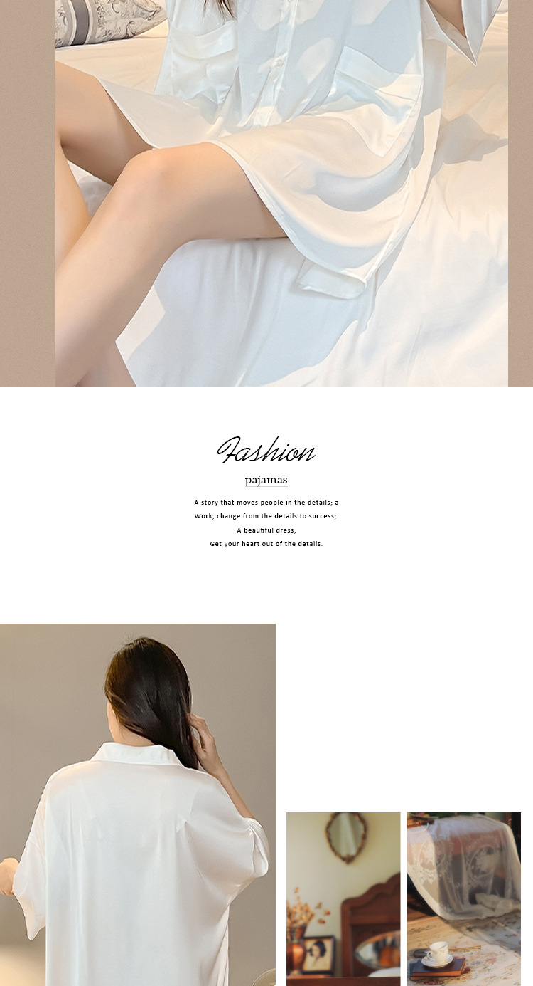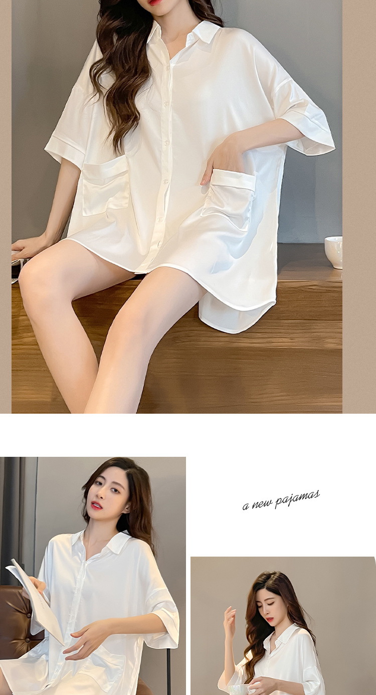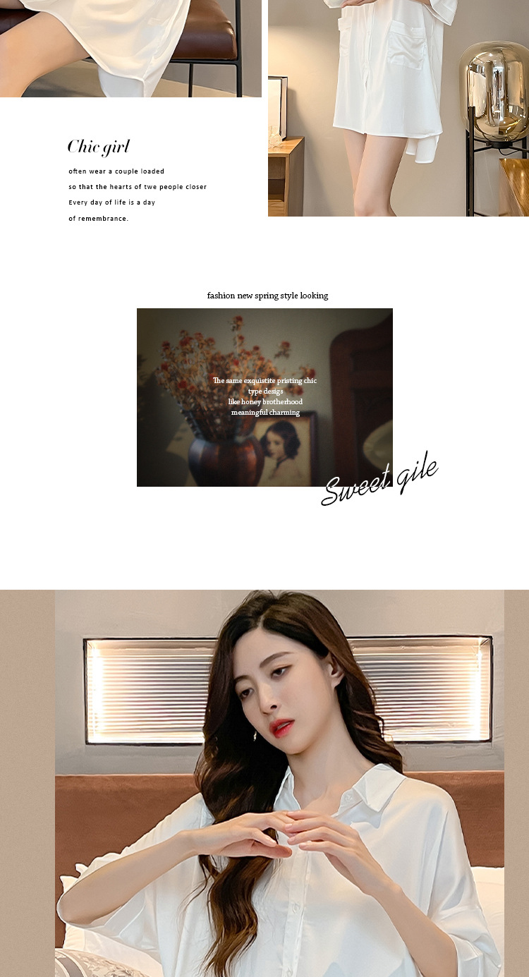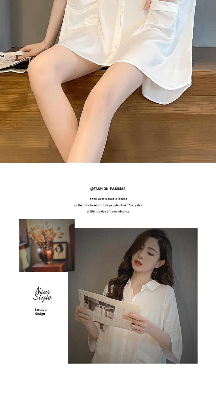 남자 친구 스타일 잠옷 봄과 여름 신상품 잠옷 여성용 아웃웨어 실크 같은 섹시한 얇은 셔츠 느슨한 홈 원피스스토어 가기