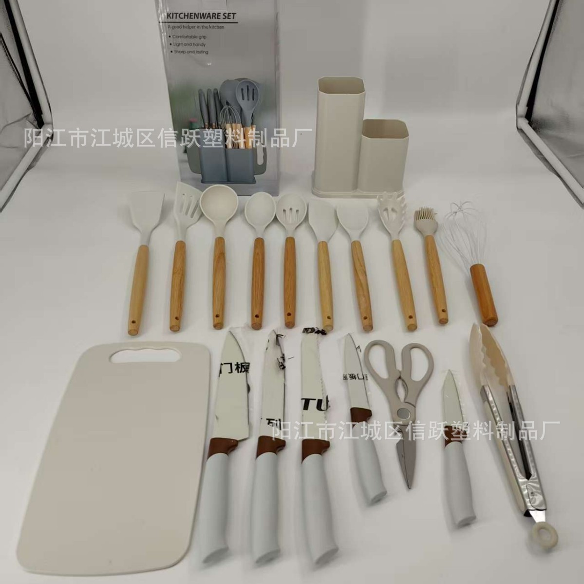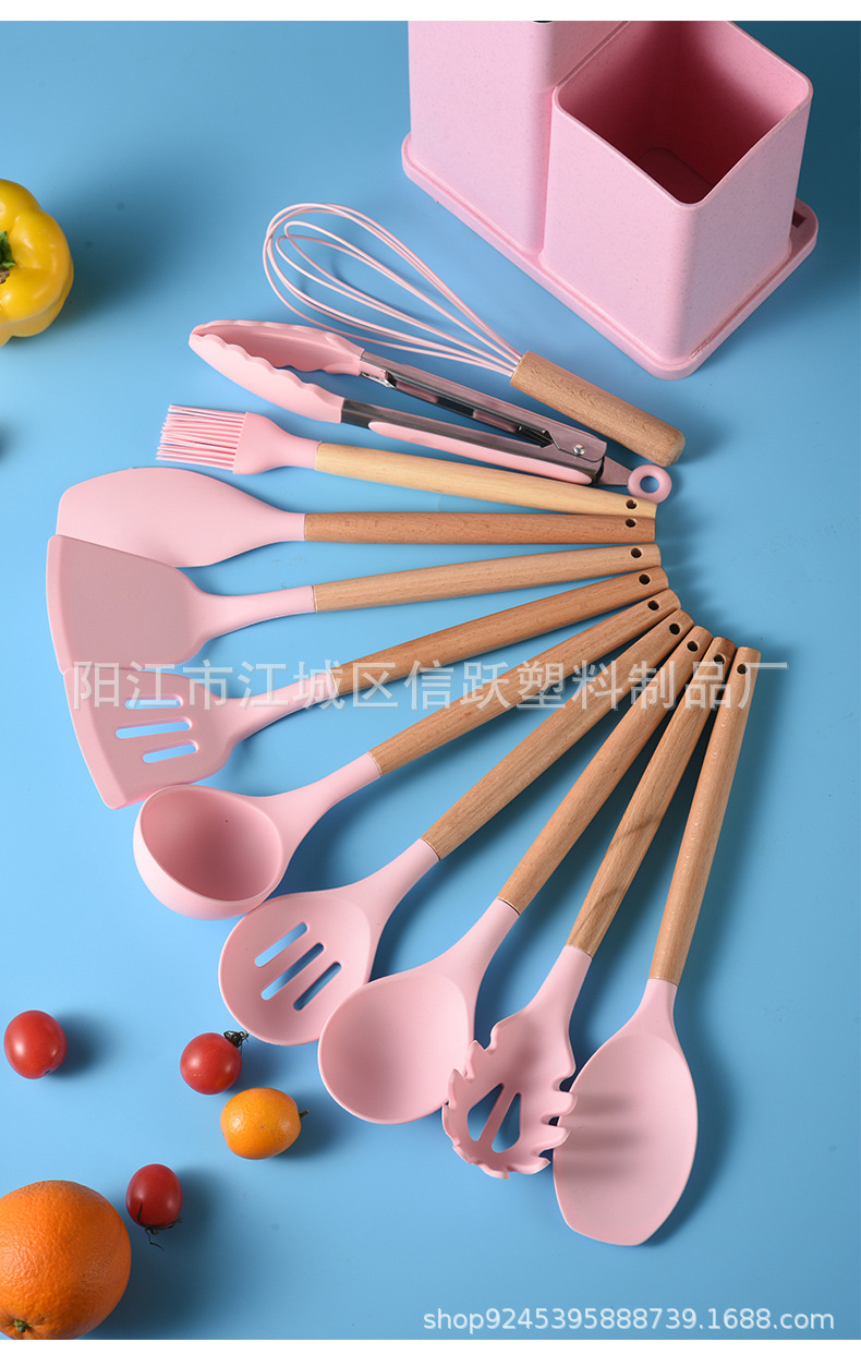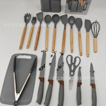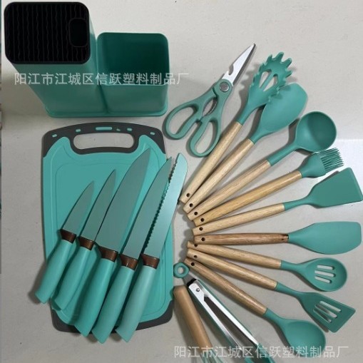 실리콘 주방 용품 세트 19 조각 세트 밀 짚 색상 세트 커터 조합 세트 저장 실린더 도구 홀더 보관 랙
