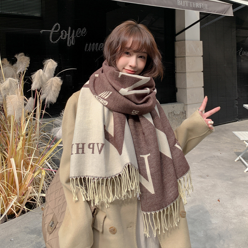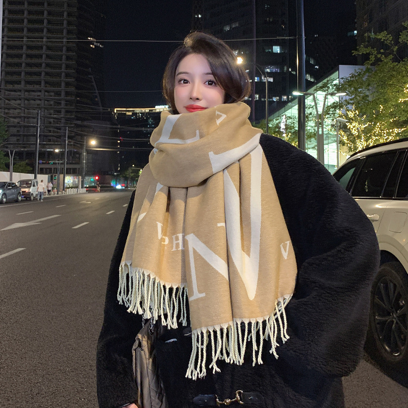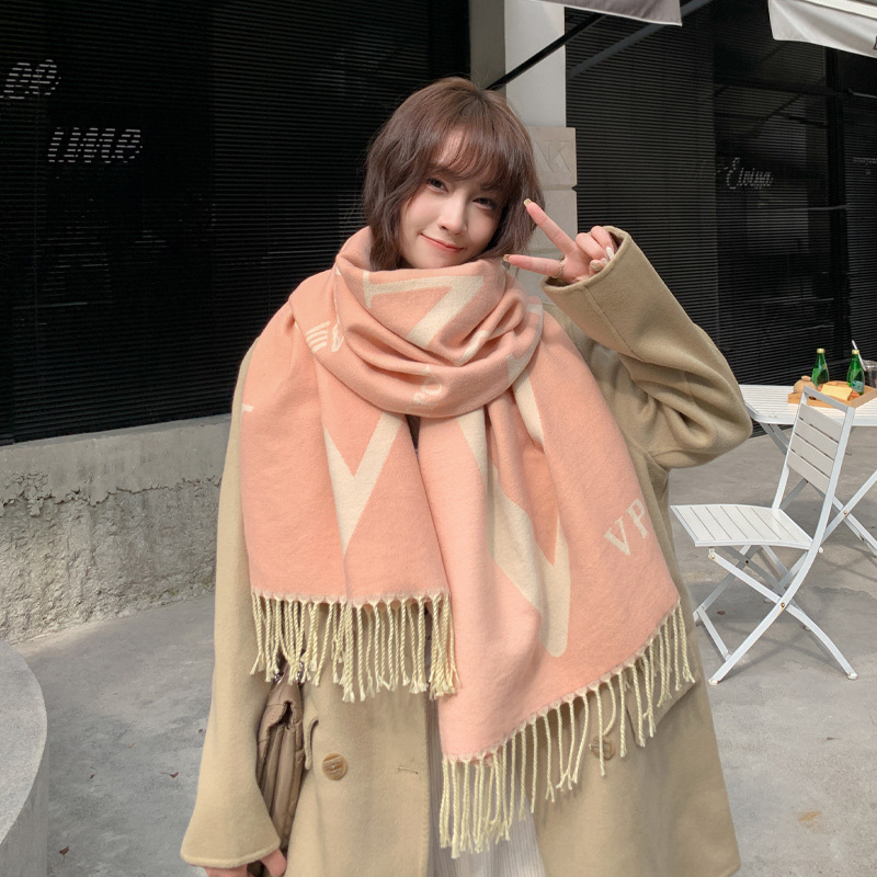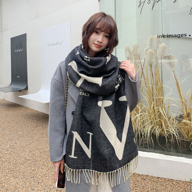 하이 엔드 패션 편지 양면 스카프 여성용 겨울 두꺼운 모조 캐시미어 숄 따뜻한 목 에어컨 룸 외부스토어 가기