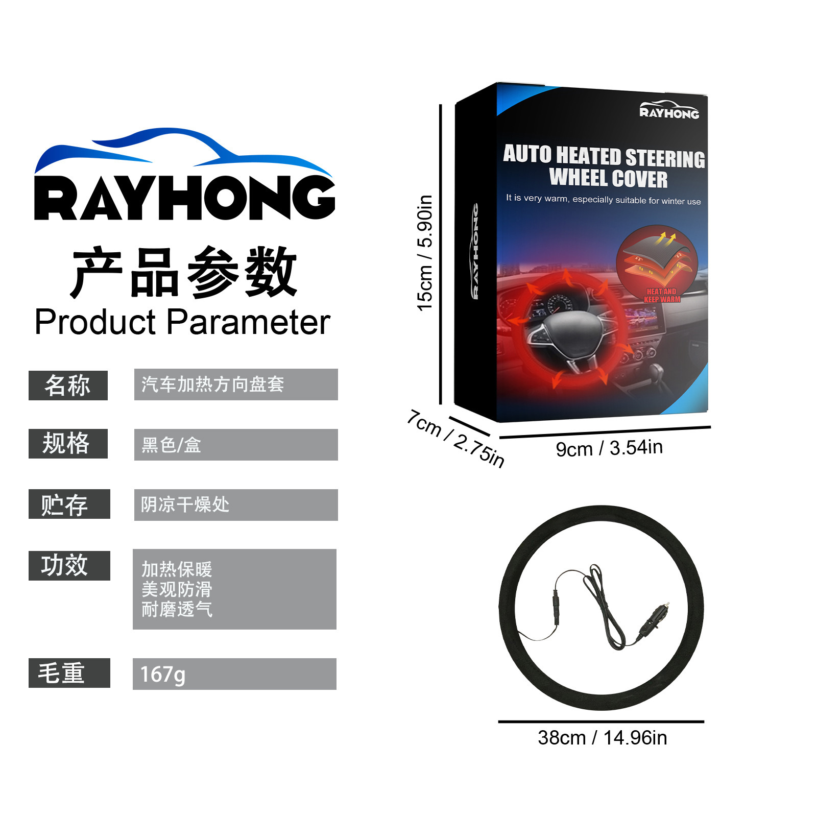 Rayhong 가열 자동차 핸들 커버 유니버설 스티어링 휠 커버 스티어링 휠 빠른 손 온난화 난방 보호 커버