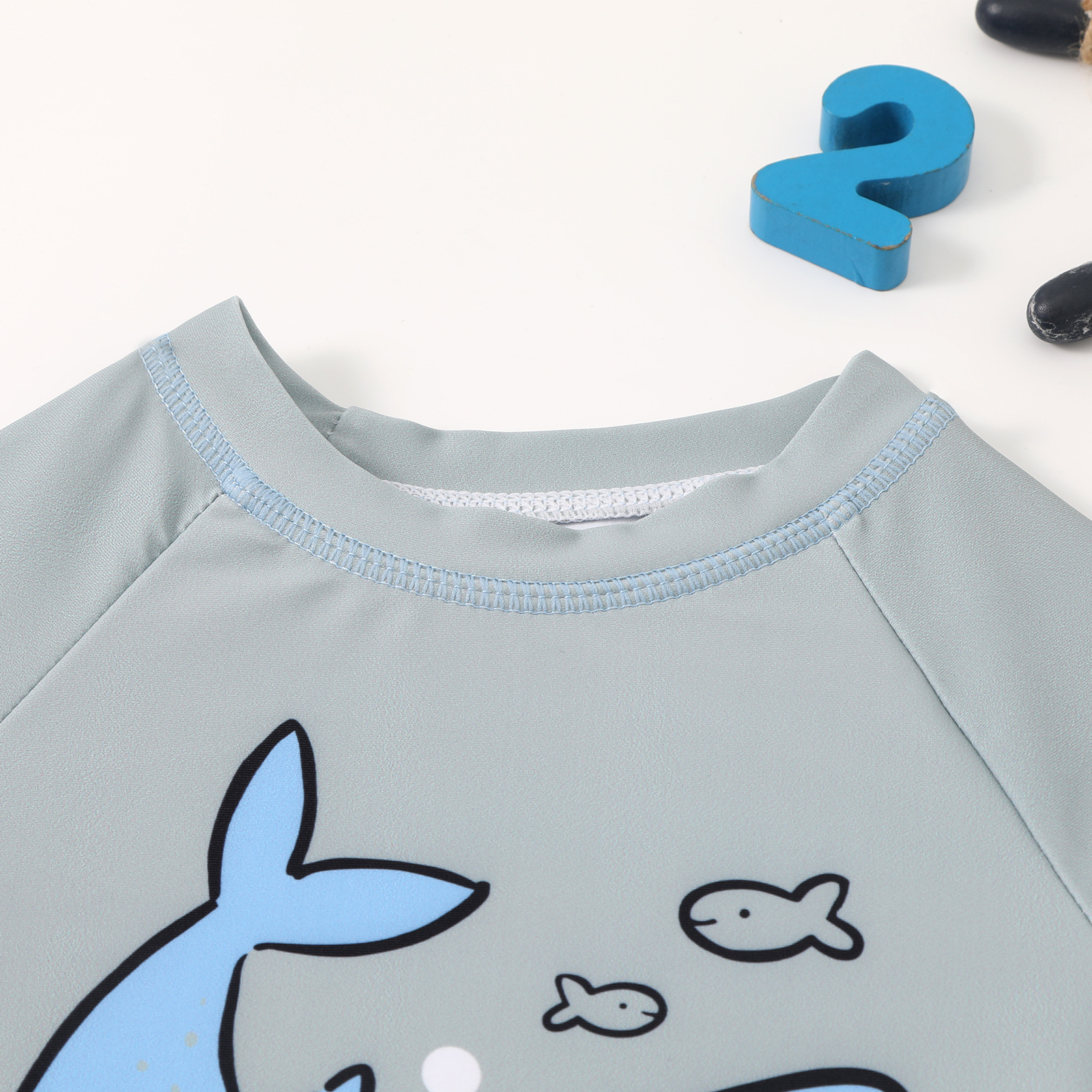 국경을 넘는 수입으로 인기 있는 남아용 분리형 수영복, 돌고래 프린트 반팔 사각팬티 수영복