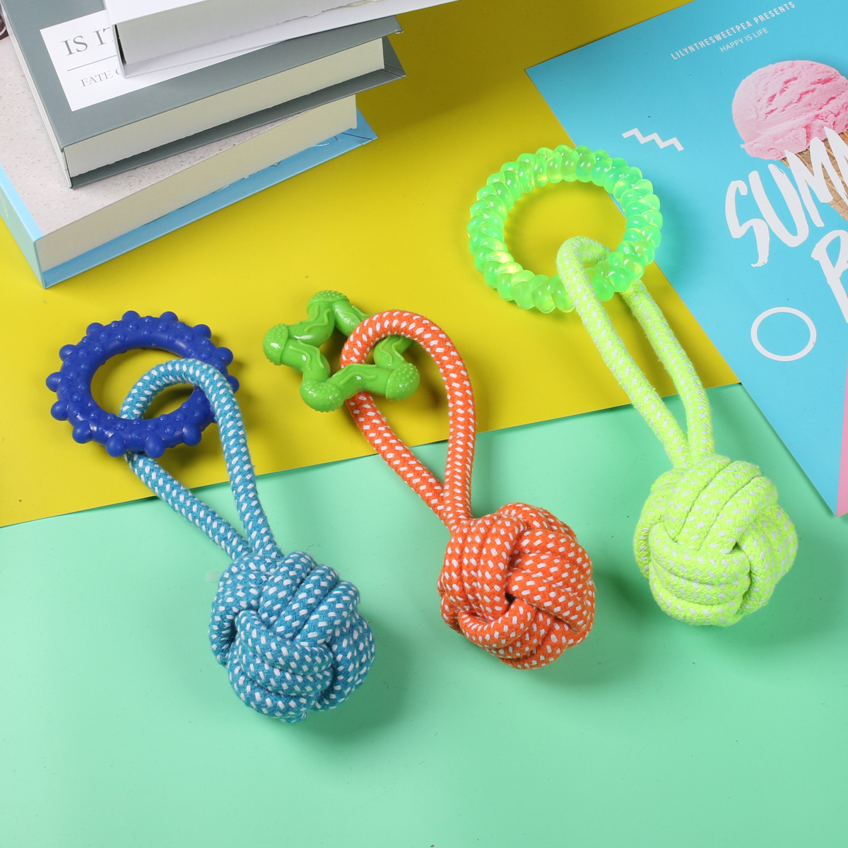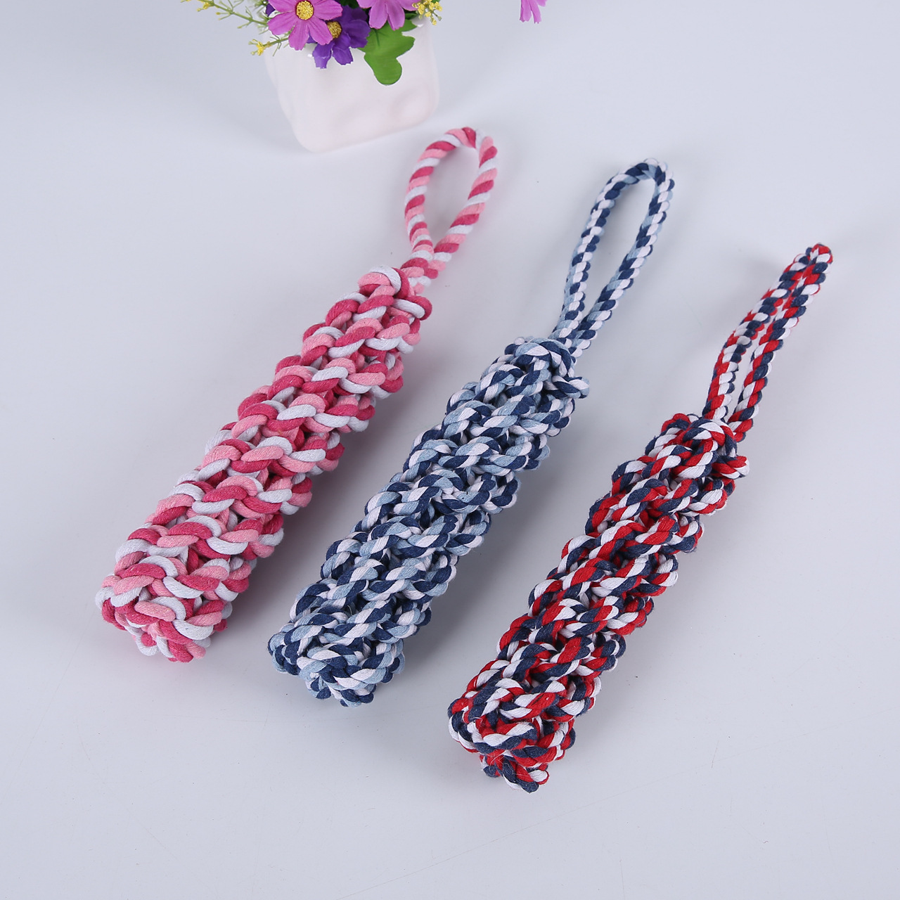국경을 넘는 특별 공급 상품, 강아지용 씹어도 깨지지 않는 내구성 있는 애완동물 장난감, 로프 매듭 장난감, 애완동물용 땋은 치아 청소 장난감스토어 가기