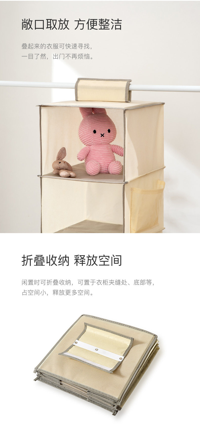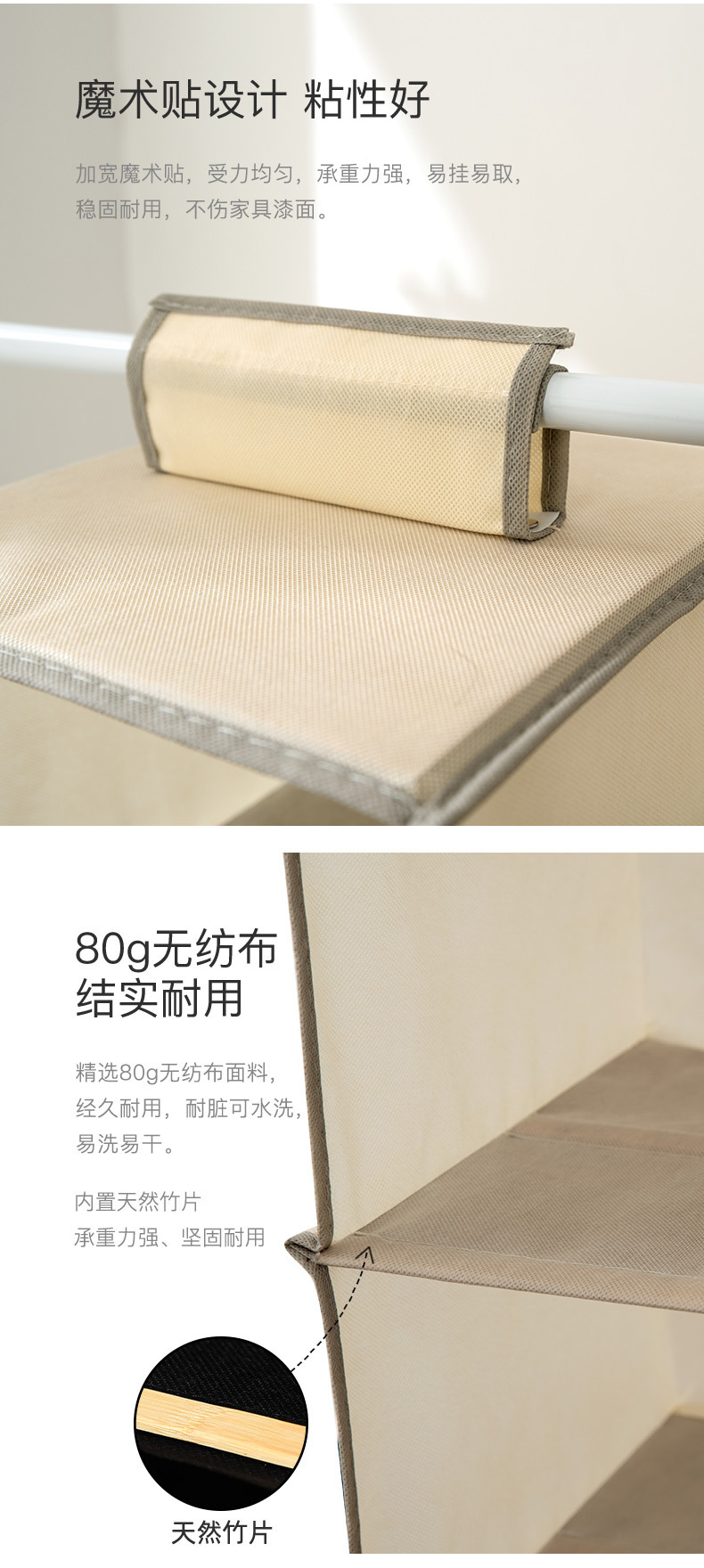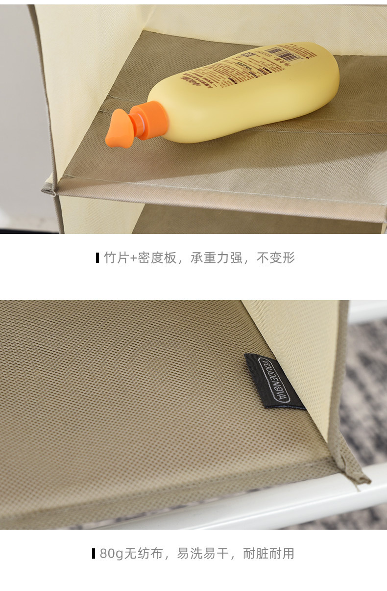精选无纺布材质 隔层选用竹条,日常使用更结实耐用