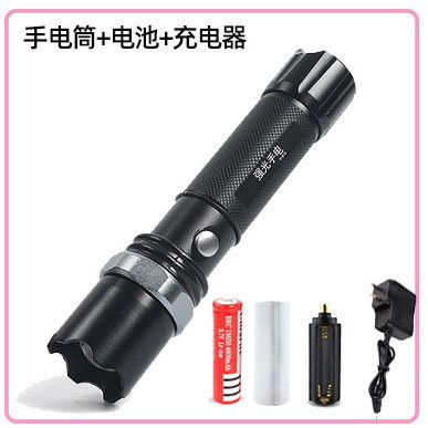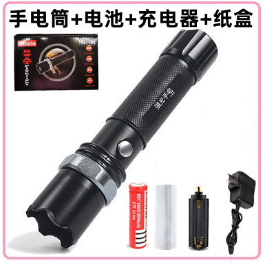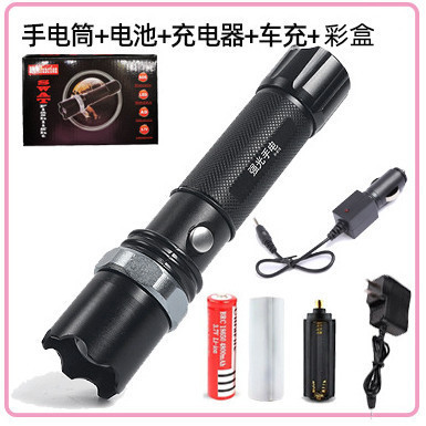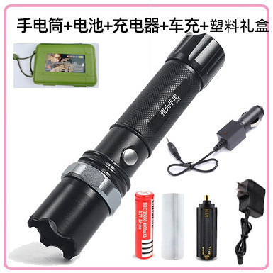 套装配置:1.手电筒一只,白色稳定管一只 2.家用充电器一只 3.车载充电器一只 4.18650锂电池一只 使用时间看电池容量来定  5.彩色硬质礼盒包装/塑料盒【要纸盒的需要定制】   。    产品可以根据自己的需要搭配使用。