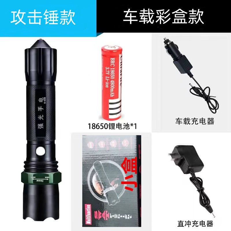 • TJ 컬러박스 모델-어택 해머 모델 [손전등 + 배터리 + 직접 충전 + 차량용 충전기 + 선물 상자]