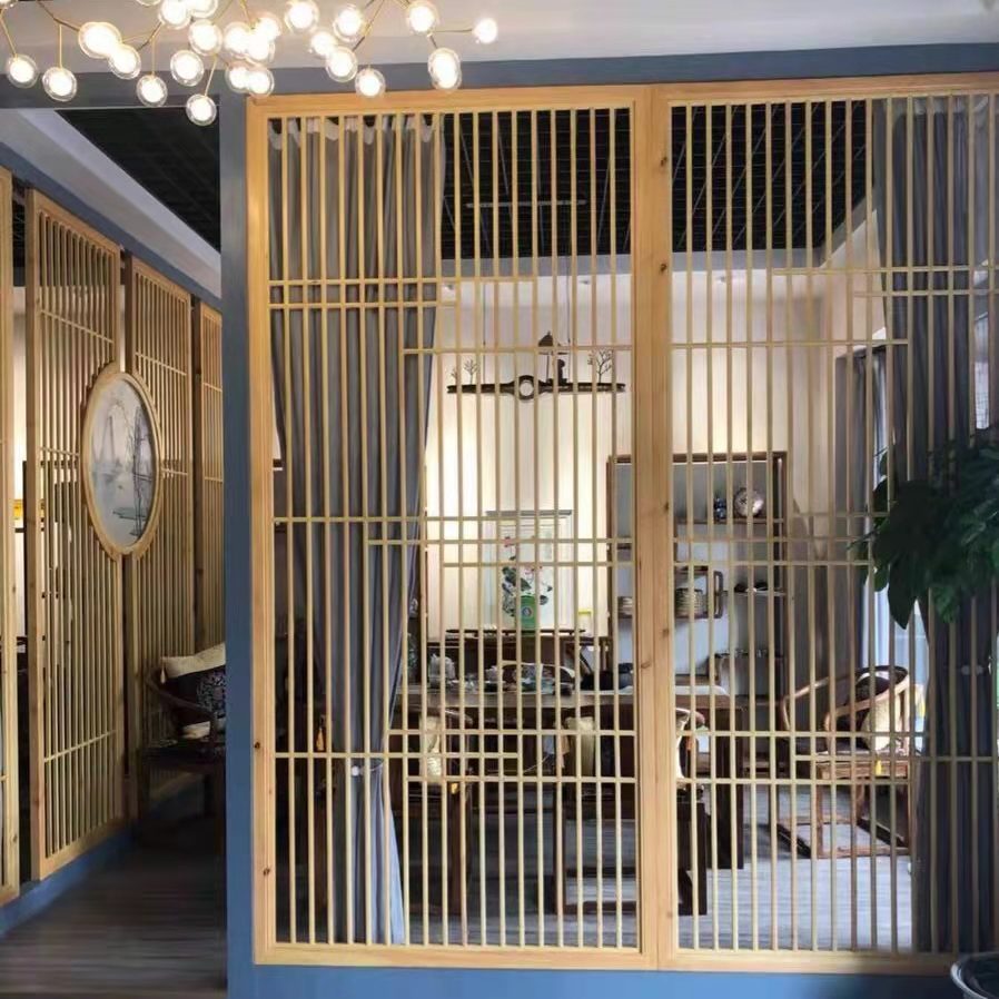 새로운 중국 스타일 솔리드 우드 스크린 호텔 나무 파티션 일본 스타일 간단한 거실 화면 격자 입구 그릴 격자스토어 가기