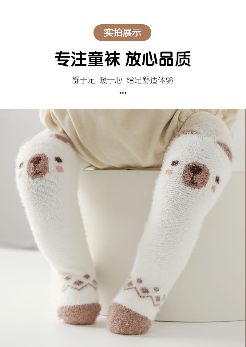 아기 스타킹 가을과 겨울 기모 두꺼운 무릎 아기 양말 밍크 벨벳 따뜻한 신생아 방한 높은 양말 도매