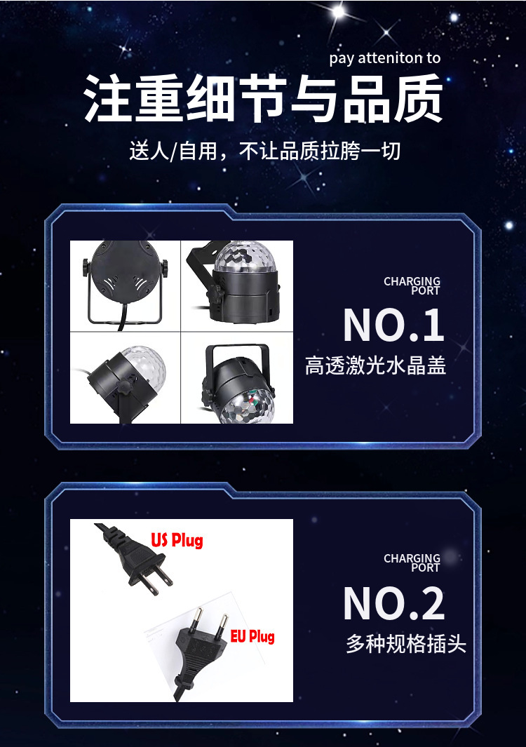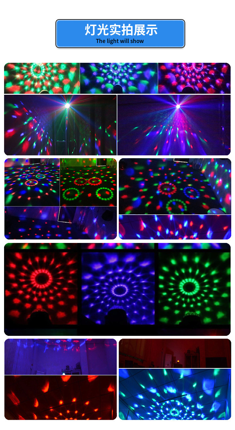크로스보더 리모컨 스탠드 크리스탈 매직 볼 라이트 LED 다채로운 사운드 컨트롤 회전 무대 조명 레이저 플래시 분위기 조명