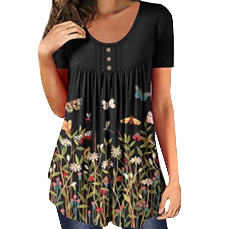 폭발 2022 여름 아마존 소원 유럽과 미국 여성의 크루넥 느슨한 단색 짧은 소매 캐주얼 탑 티셔츠 여성스토어 가기