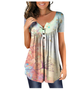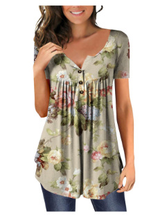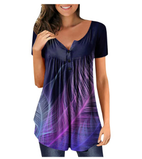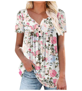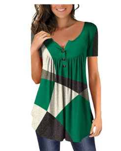 폭발 2022 여름 아마존 소원 유럽과 미국 여성의 크루넥 느슨한 단색 짧은 소매 캐주얼 탑 티셔츠 여성
