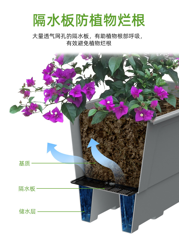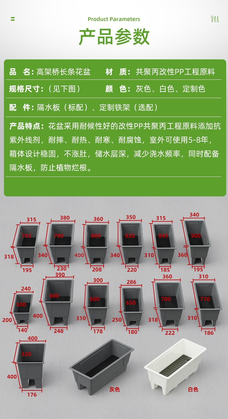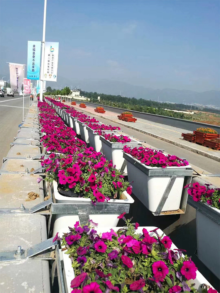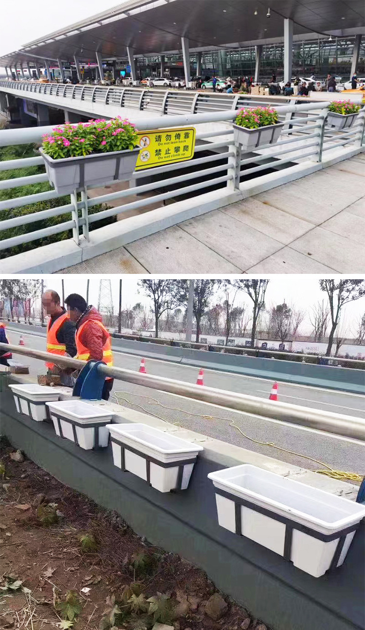 직사각형 높은 다리 화분 Tianyiao 꽃 상자 도시 도로 도로 격리 난간 녹색 심기 상자 PP 꽃 여물통