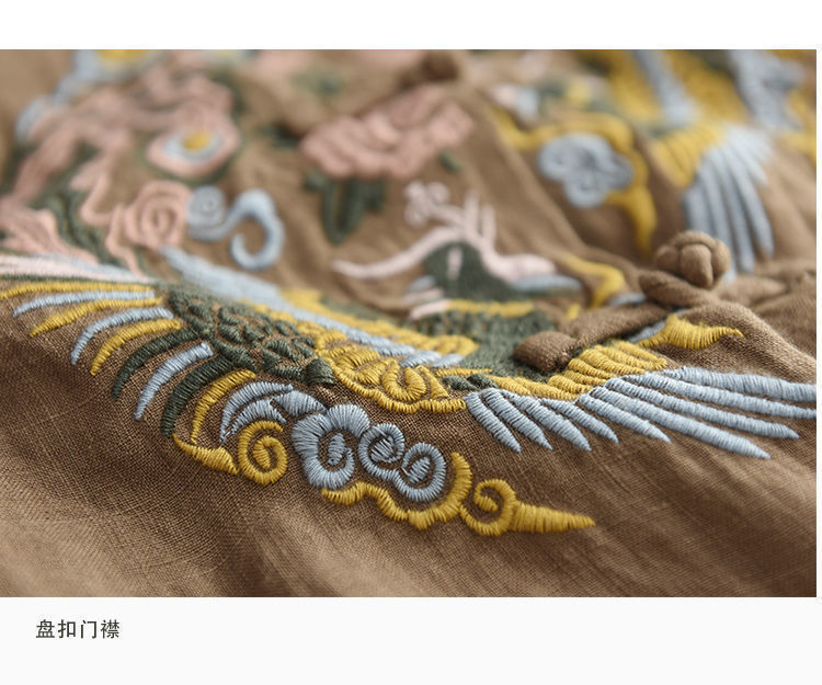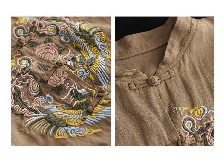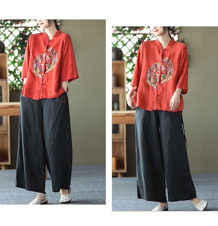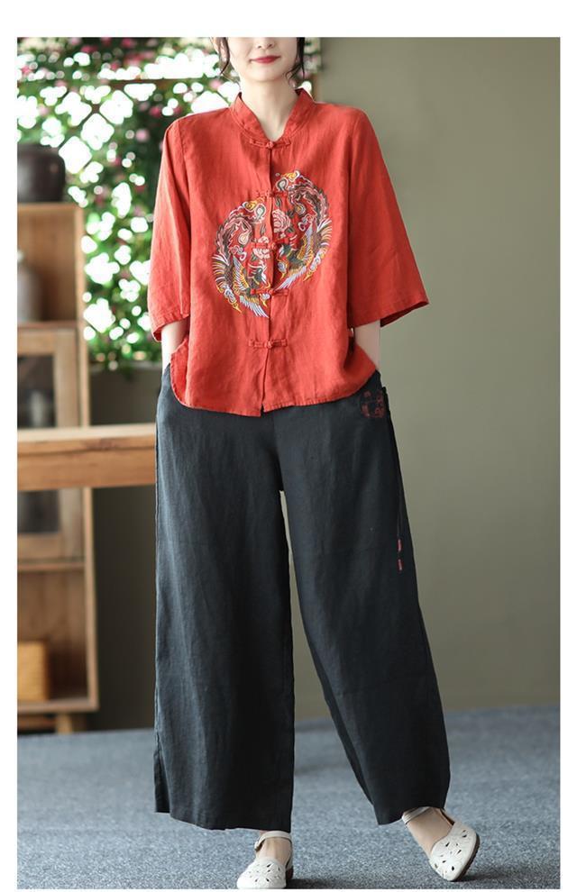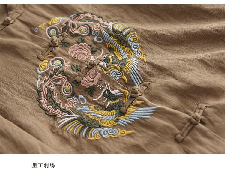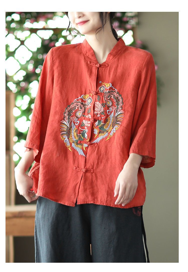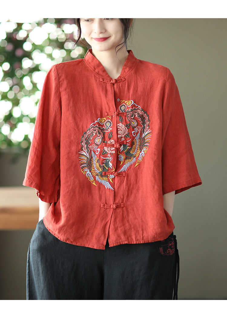 빈티지 에스닉 스타일 중공업 자수 면과 린넨 탑 여성의 예술적 버클 스탠드 칼라 느슨한 플러스 사이즈 셔츠 우아한 셔츠스토어 가기
