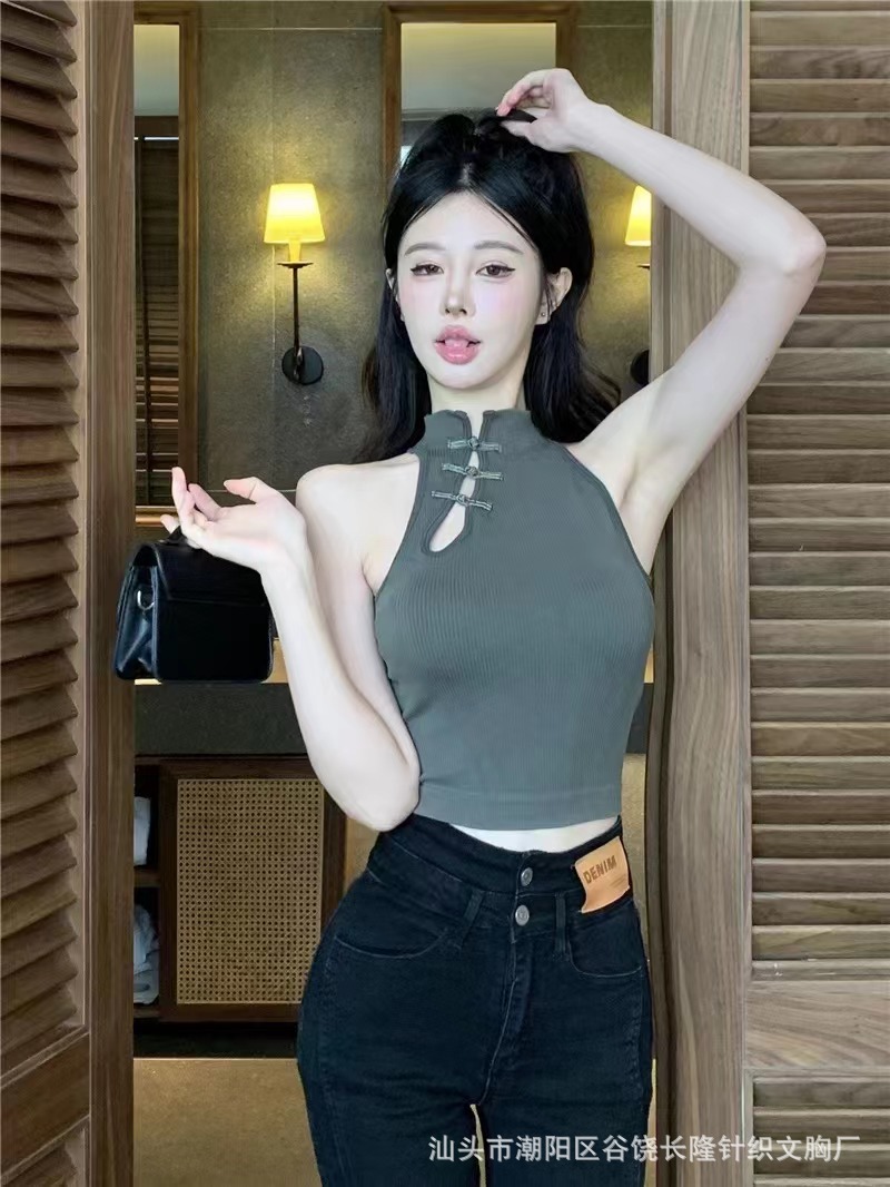 새로운 빈티지 교수형 목 캐미솔 조끼 여자의 뜨거운 소녀 섹시한 끈이없는 슬리밍 아름다운 스트랩 가슴 패드 민소매 탑