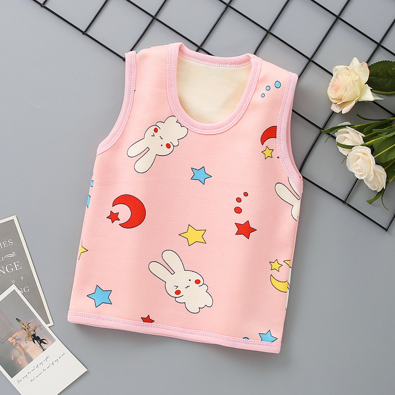 가을과 겨울 어린이 따뜻한 조끼 기모 두꺼운 배꼽 조끼 소년과 소녀 아기 바닥 민소매 속옷 모든 일치