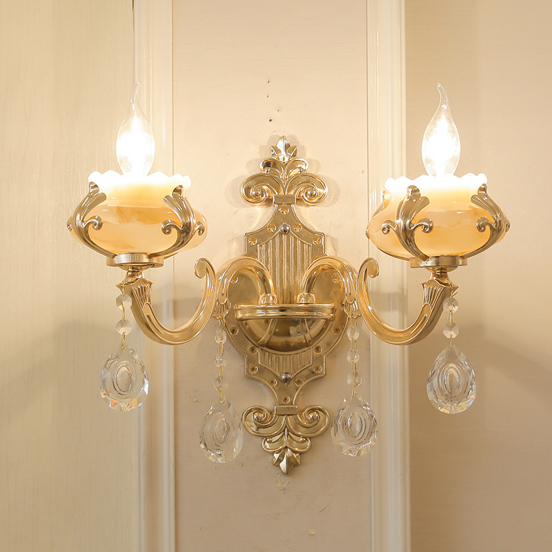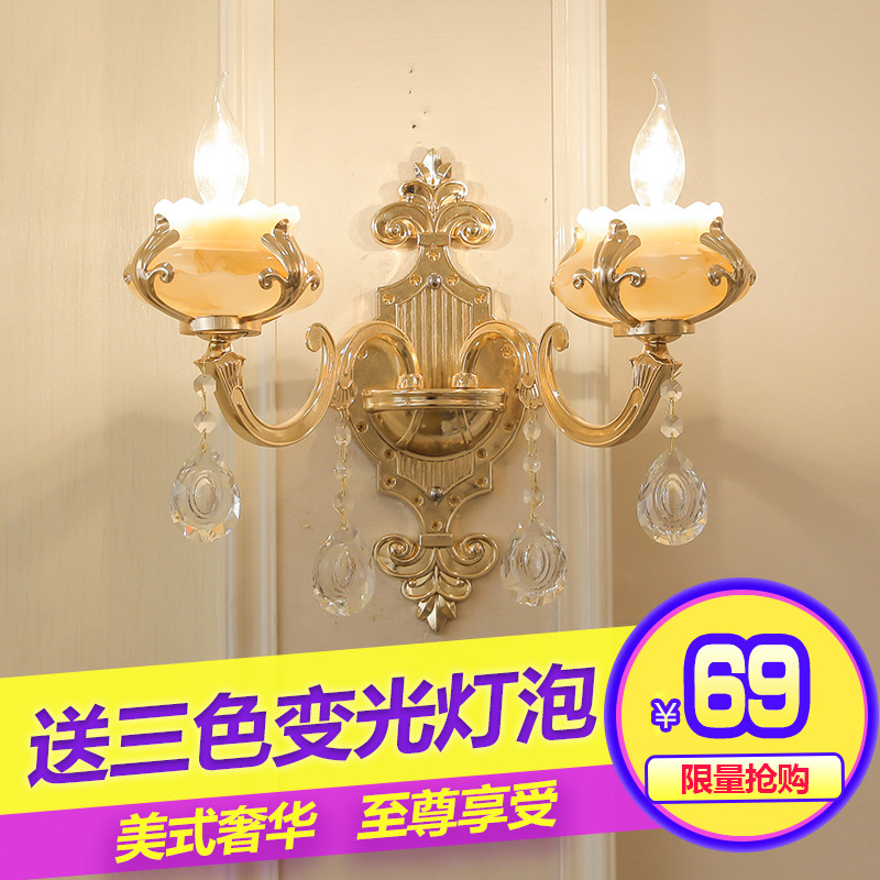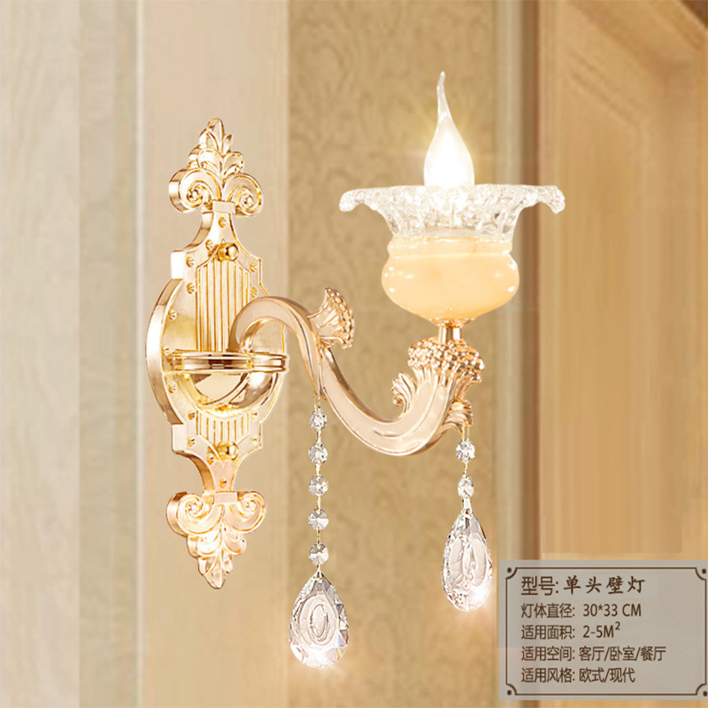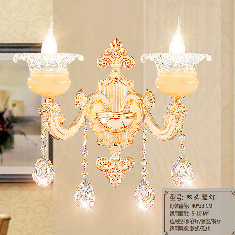 유럽식 크리스탈 벽 램프 거실 배경 벽 램프 침실 침대 옆 램프 더블 헤드 아연 합금 통로 램프 현관 벽 램프