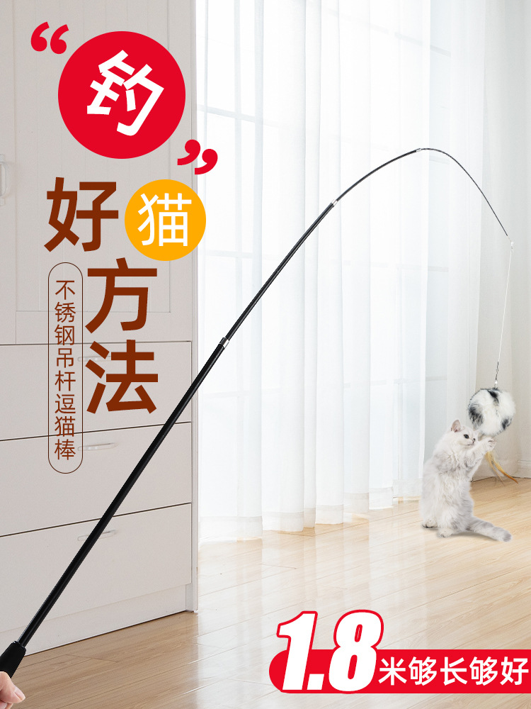 긴 1.8cm 망원경 막대 고양이 테이 애완 동물 용품 깃털 물고기 작은 마우스 낚시 고양이 자기 안녕 대화 형 장난감스토어 가기