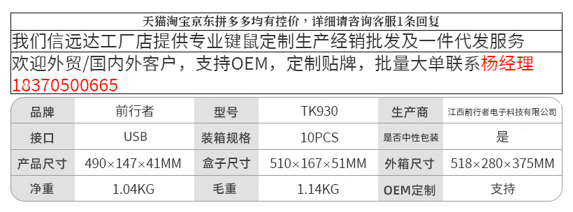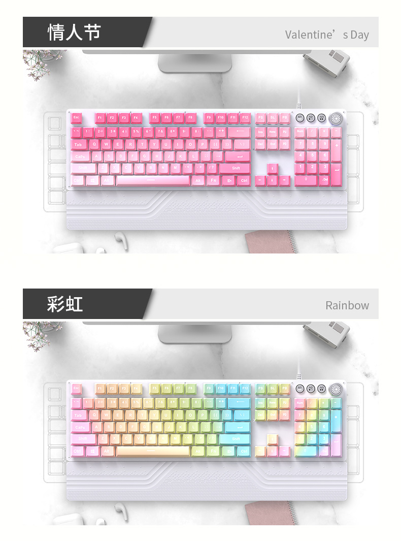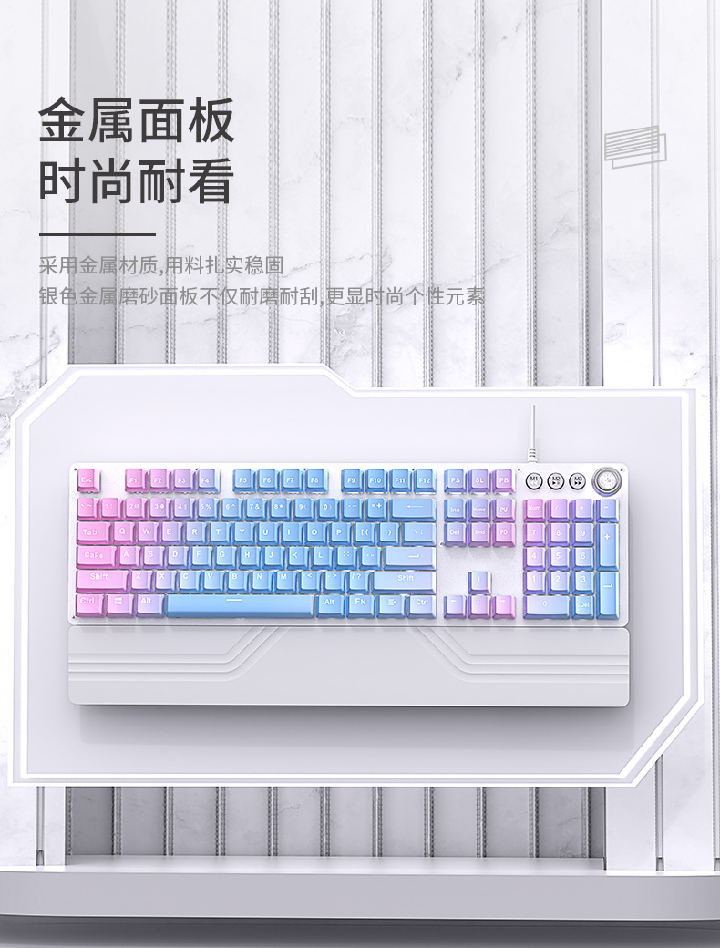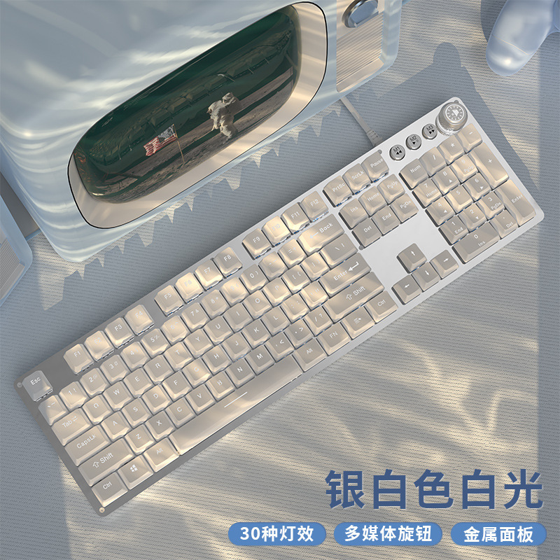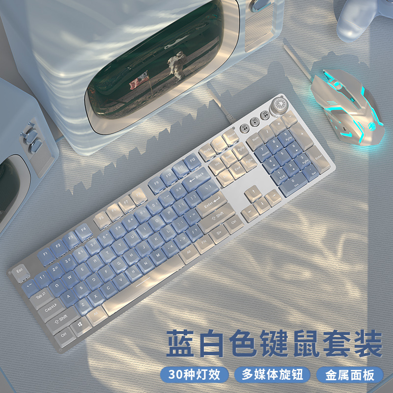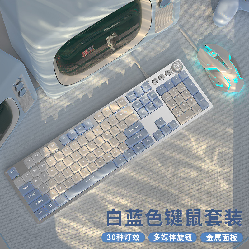Forerunner TK930 기계식 키보드 흰색과 파란색 테마 금속 패널 유선 전자 스포츠 게임 키보드 도매