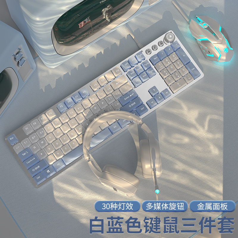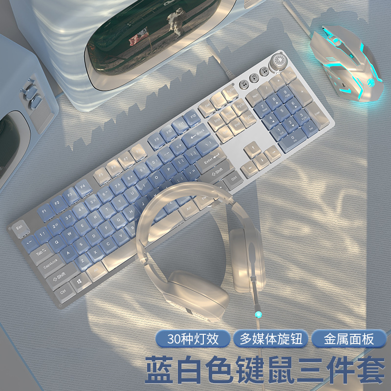 • 화이트 블루 화이트 라이트 게임 매크로 마우스 헤드셋 [다기능 손잡이-30 가지 조명 효과]]