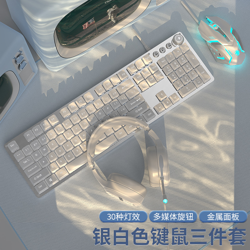 • 실버 화이트 게임 매크로 마우스 헤드셋 [다기능 손잡이-30 가지 조명 효과]]
