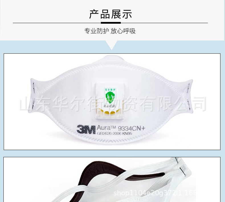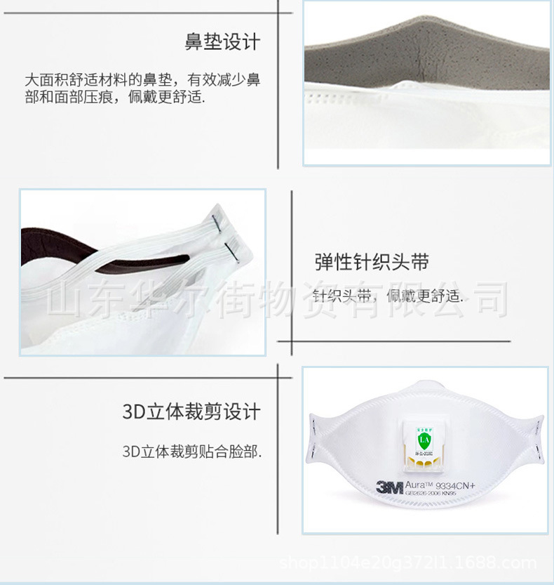 3M9334CN+ 안티-스모그 헤드밴드형 통기성 방진 산업용 먼지 n95 보호 마스크 방진 및 안개 방지 정품