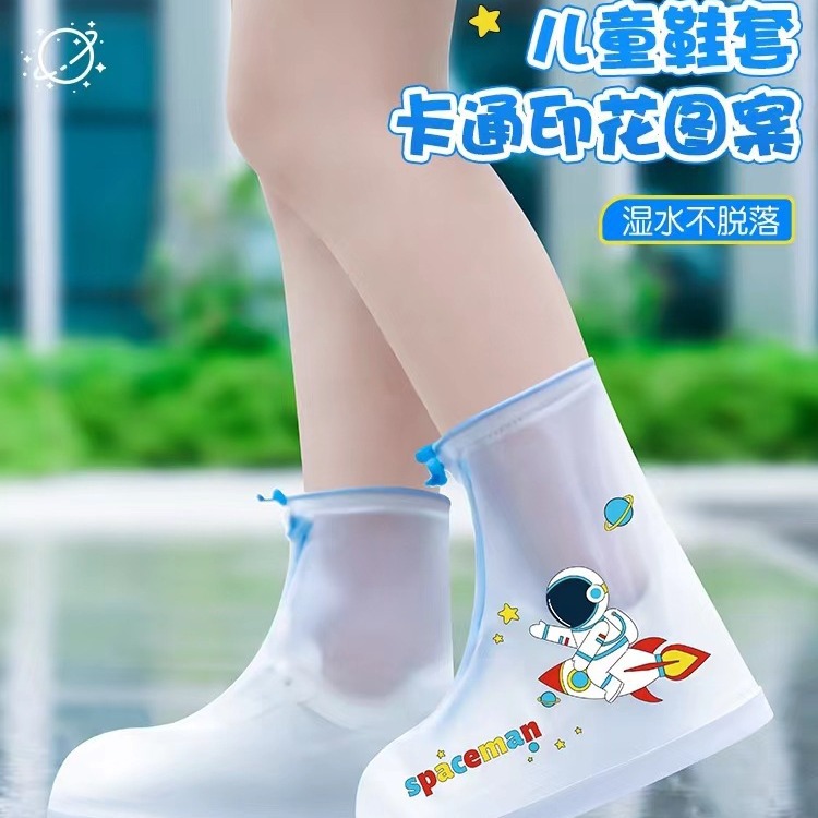 어린이 레인 슈즈 미끄럼 방지 방수 방수 우주 비행사 레인 슈즈 소년과 소녀를위한 커버 아기 녹색 공룡 두꺼운 내마모성 레인 슈즈