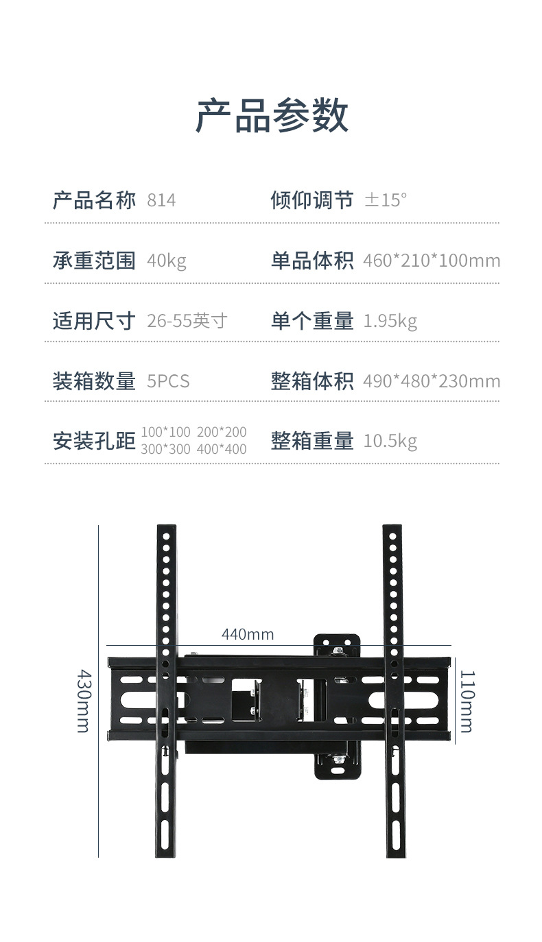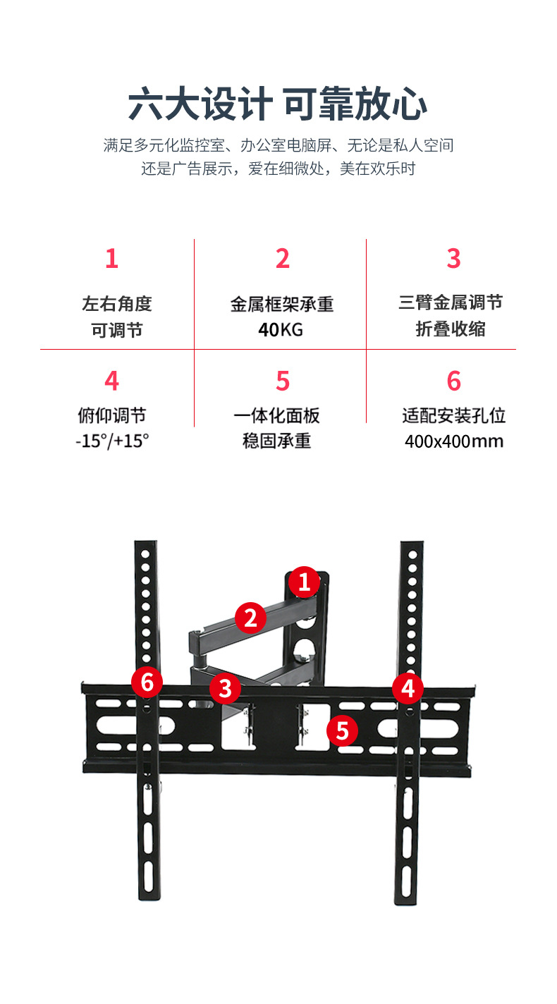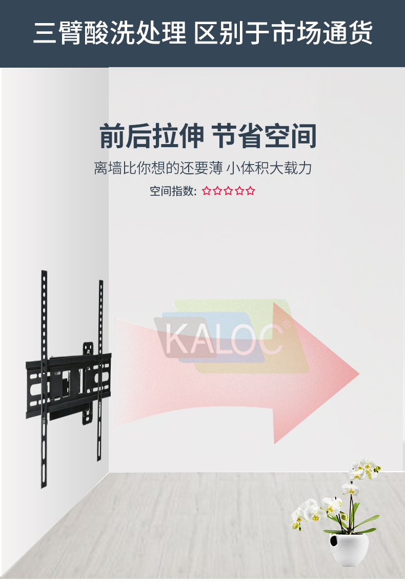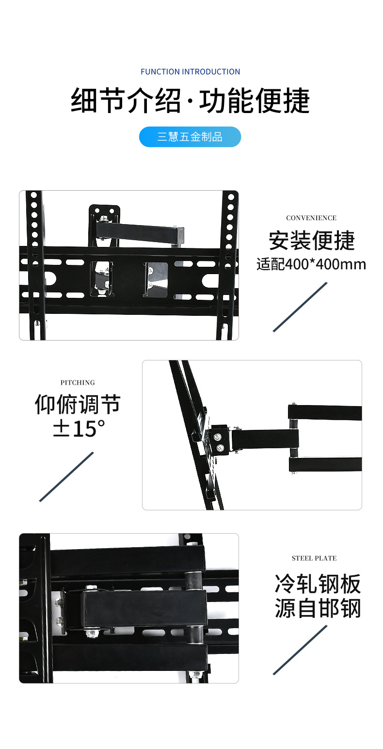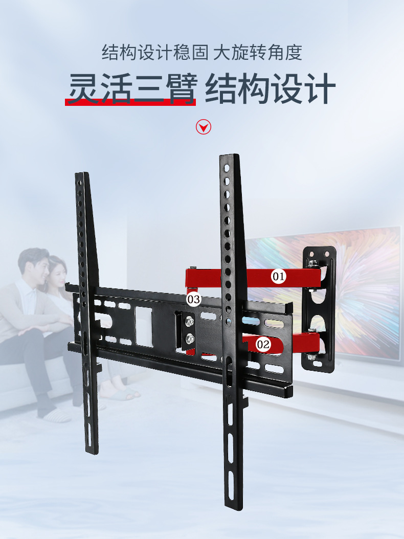 제조 업체 공급 LCD TV 텔레스코픽 접이식 랙 26-55 인치 벽걸이 모니터 3 팔 랙