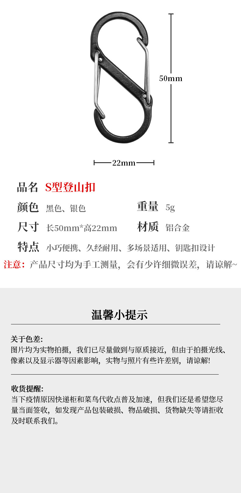 야외 알루미늄 합금 S자 등산 버클 8 자 버클 미니 스프링 버클 주전자 키 체인 스틸 버클 백팩 버클스토어 가기