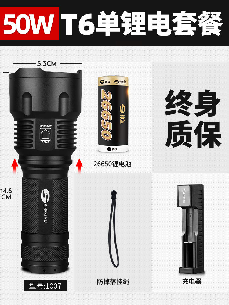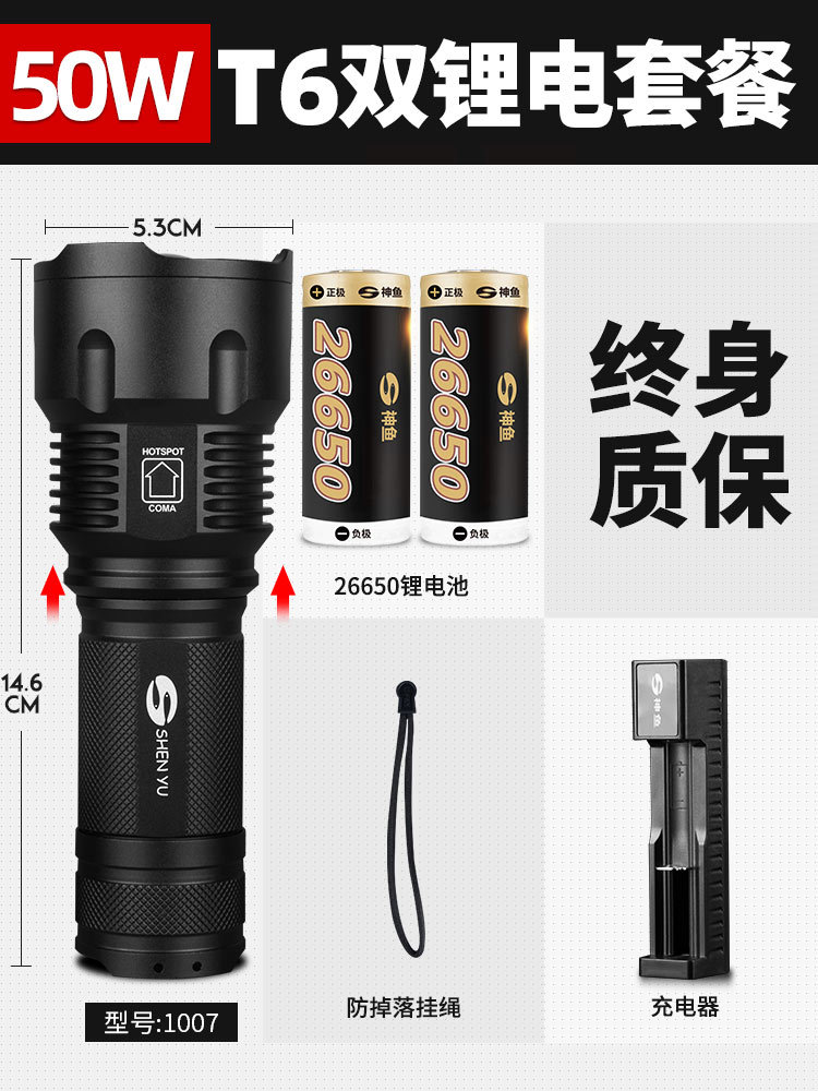 Shenyu 손전등 강한 빛 충전식 야외 슈퍼 밝고 원격 소형 미니 휴대용 가정용 내구성 LED 램프