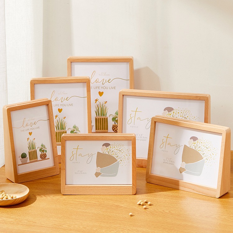 간단한 사다리꼴 너도밤 나무 사진 프레임 6 인치 7 인치 8 인치 10 인치 아크릴 나무 작은 테이블스토어 가기