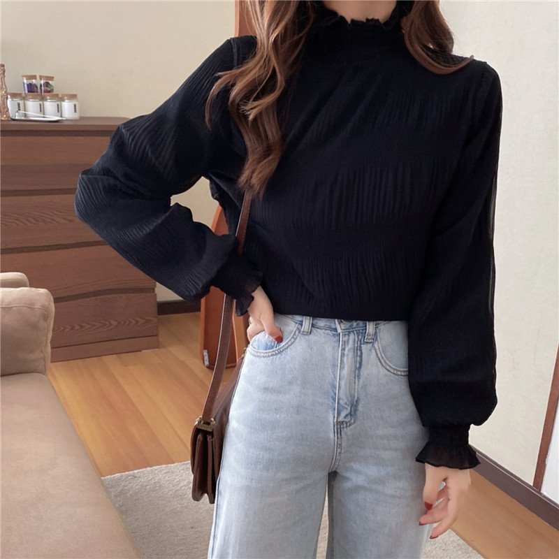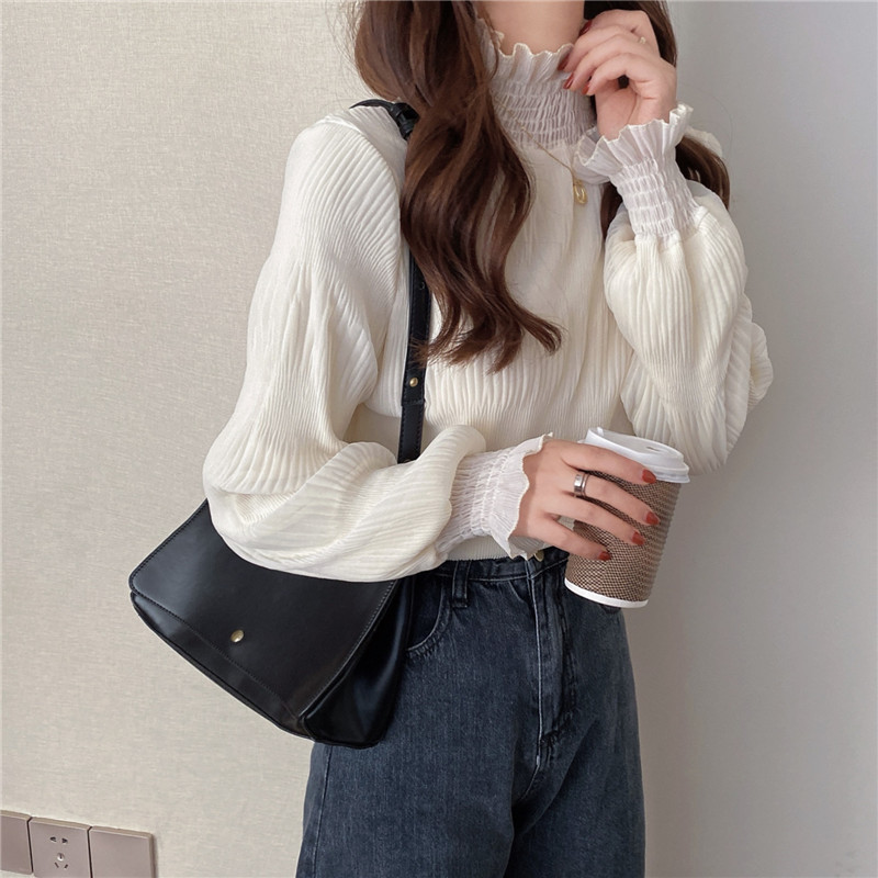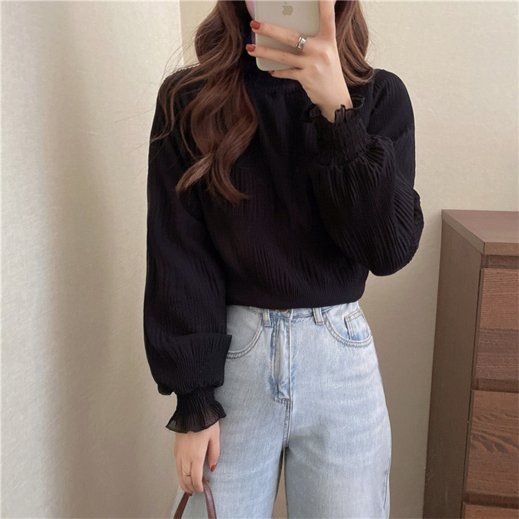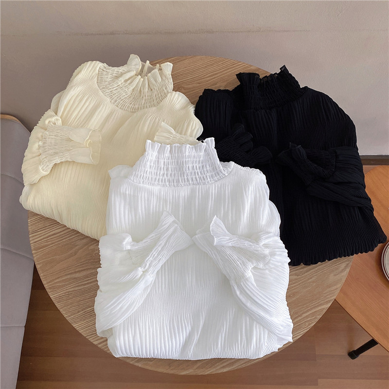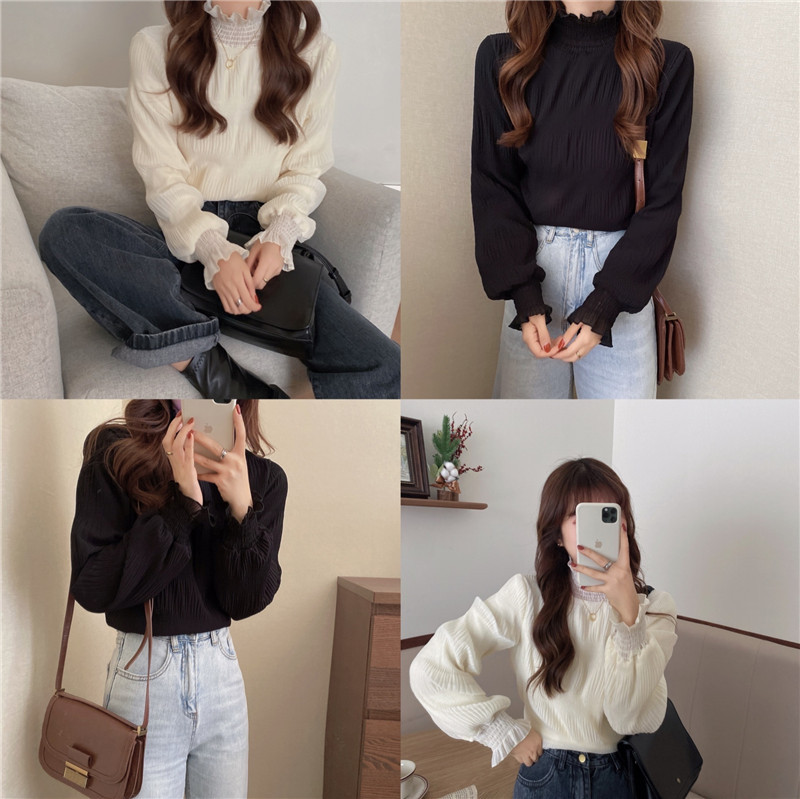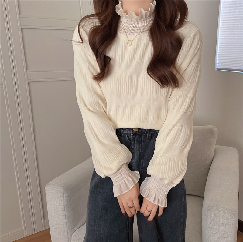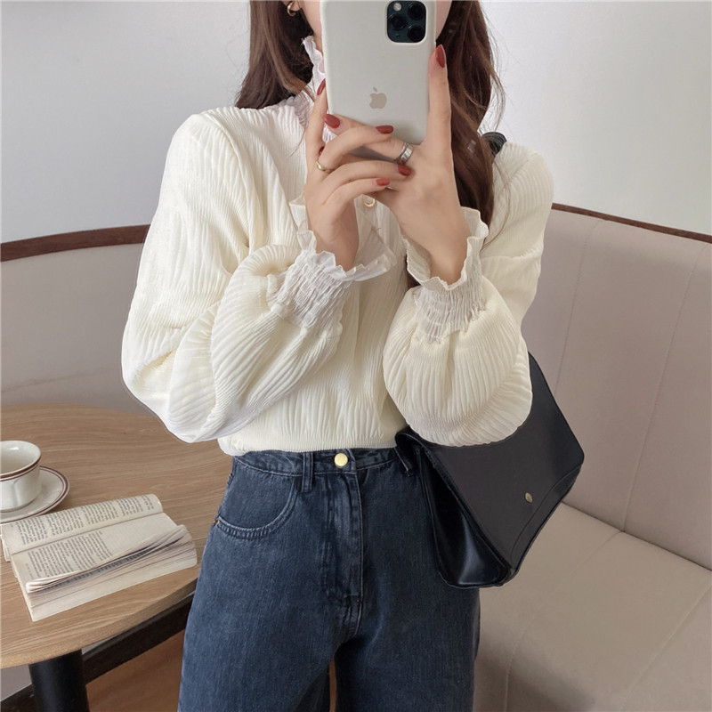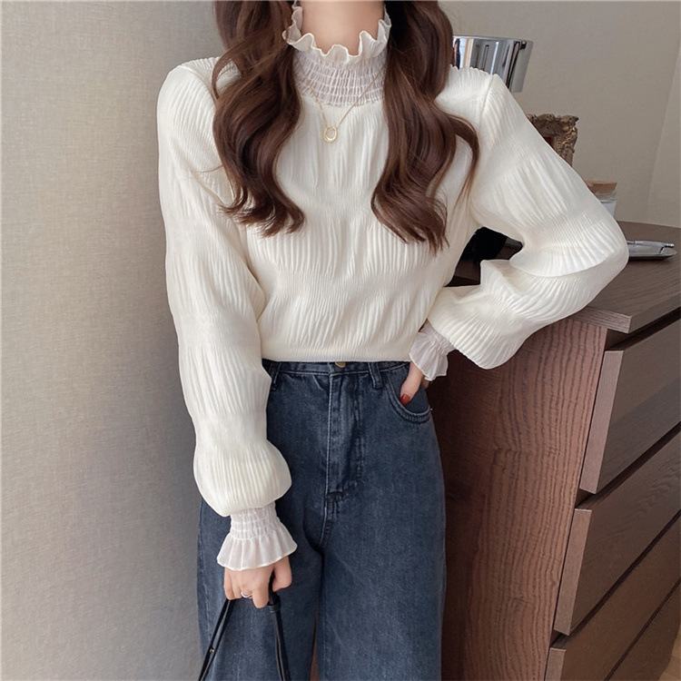 2025 새로운 가을 겨울 스타일 벨벳 두꺼운 긴팔 하이 넥 레이스 바닥 셔츠, 세련된 긴팔 따뜻한 탑스토어 가기