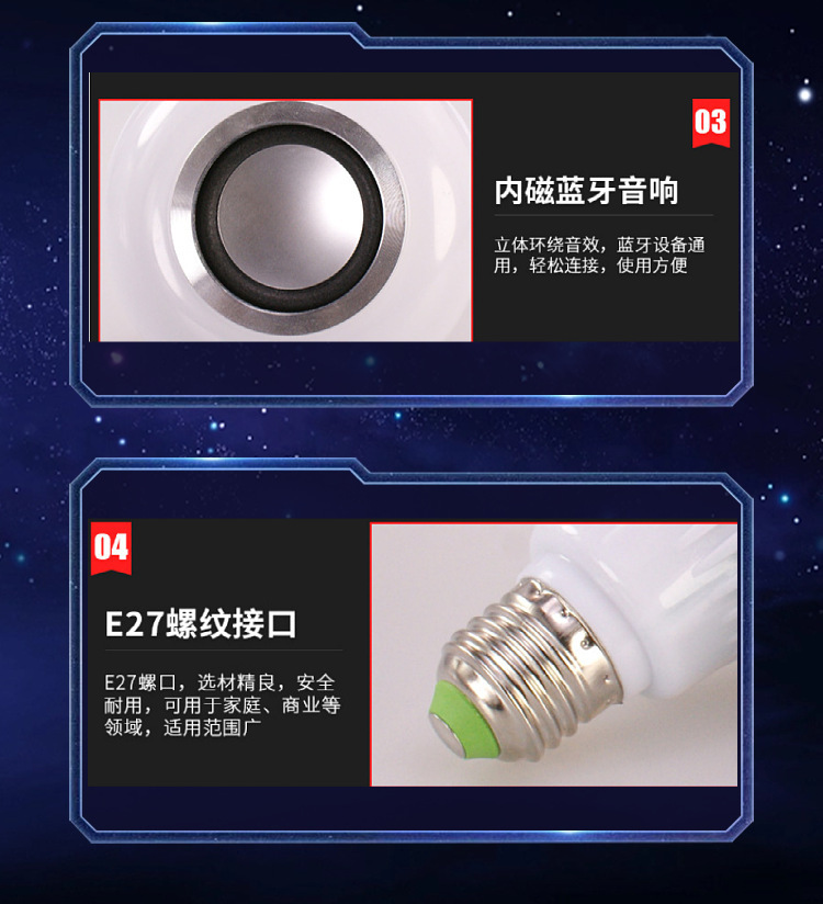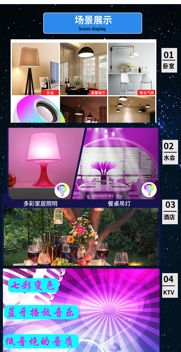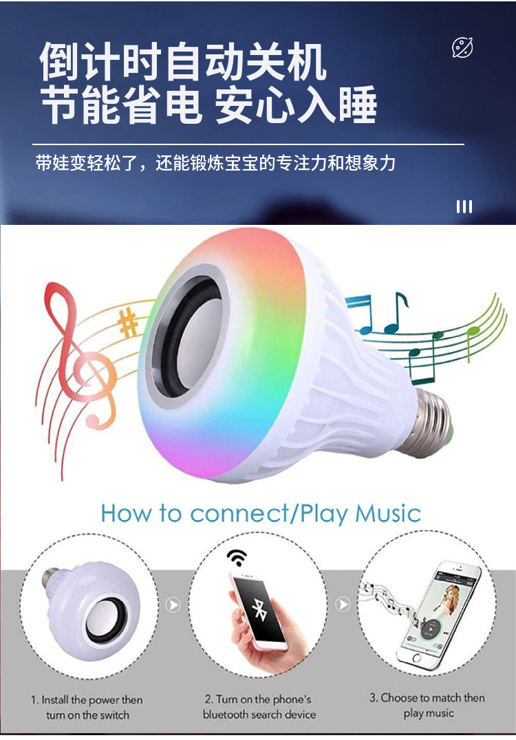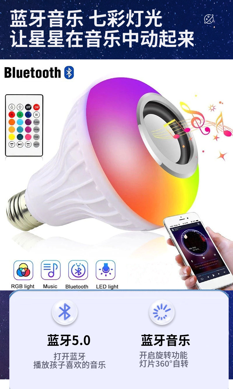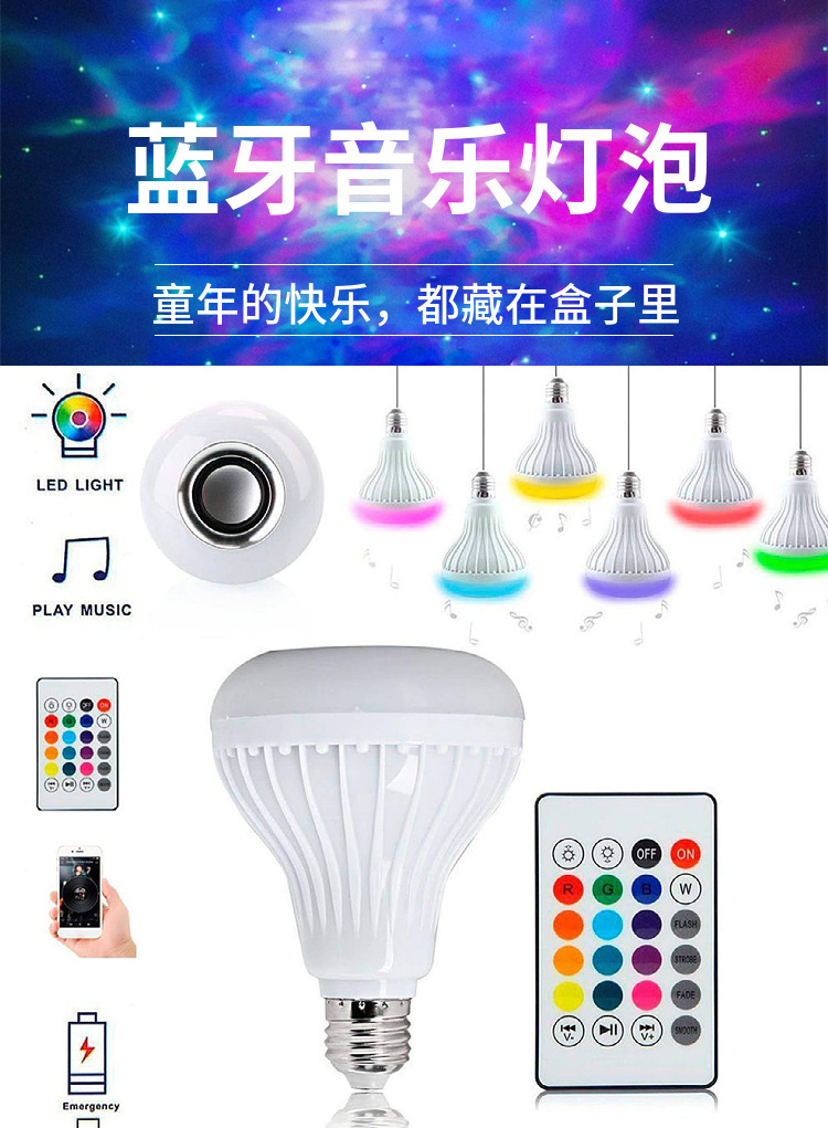 국경을 넘는 다채로운 블루투스 스피커 전구 RGB 뮤직 램프 E27 무선 리모컨 무대 조명 라이트 쇼 특수 효과스토어 가기