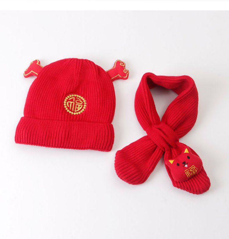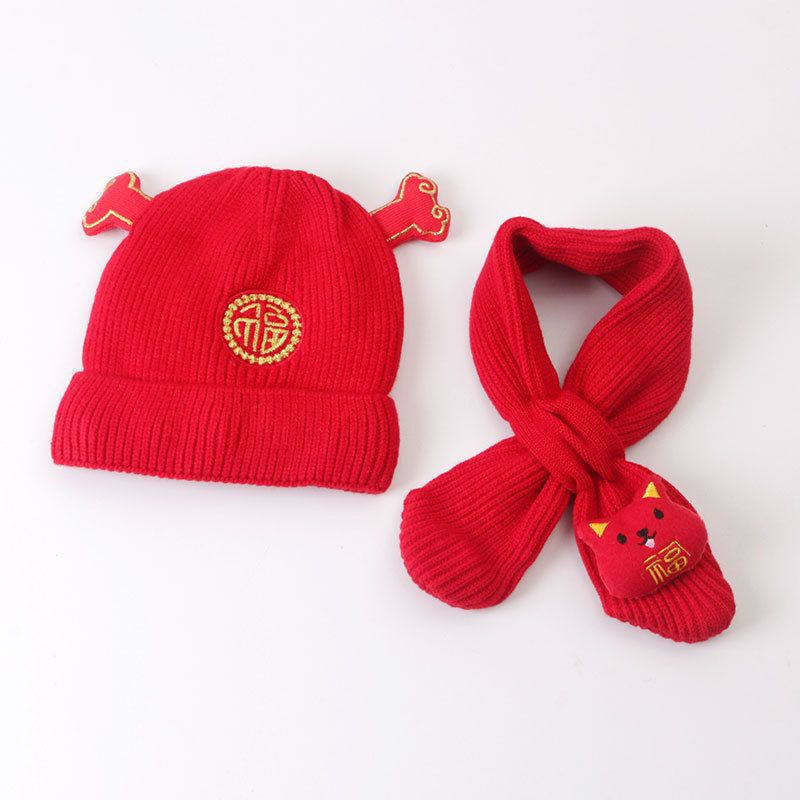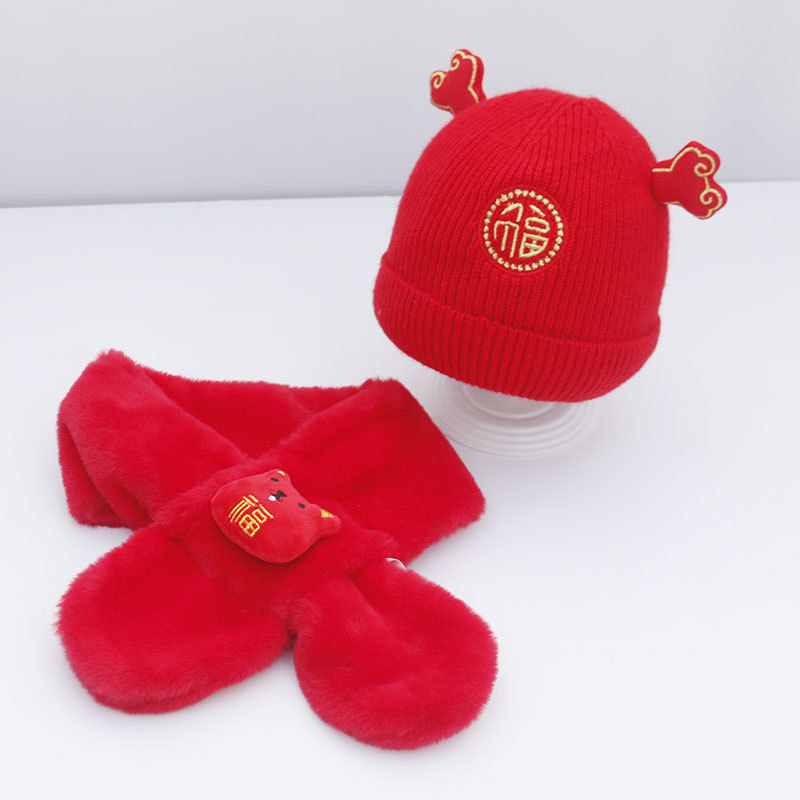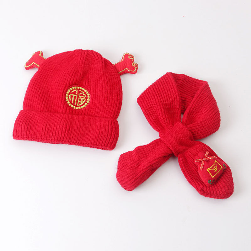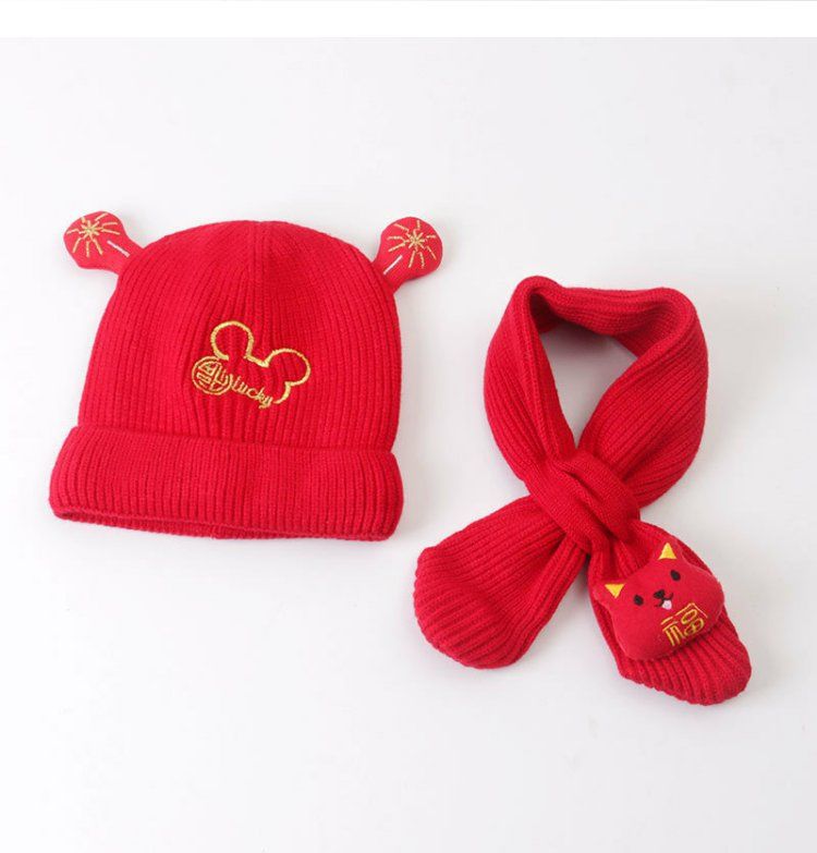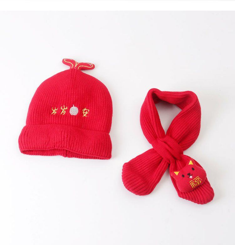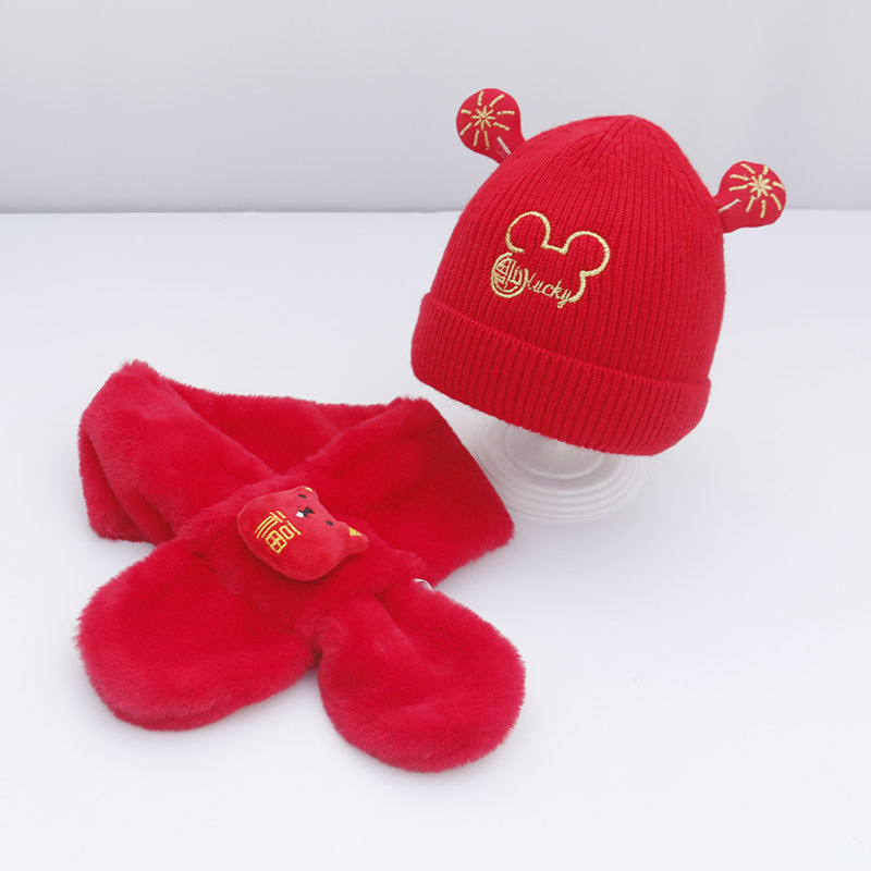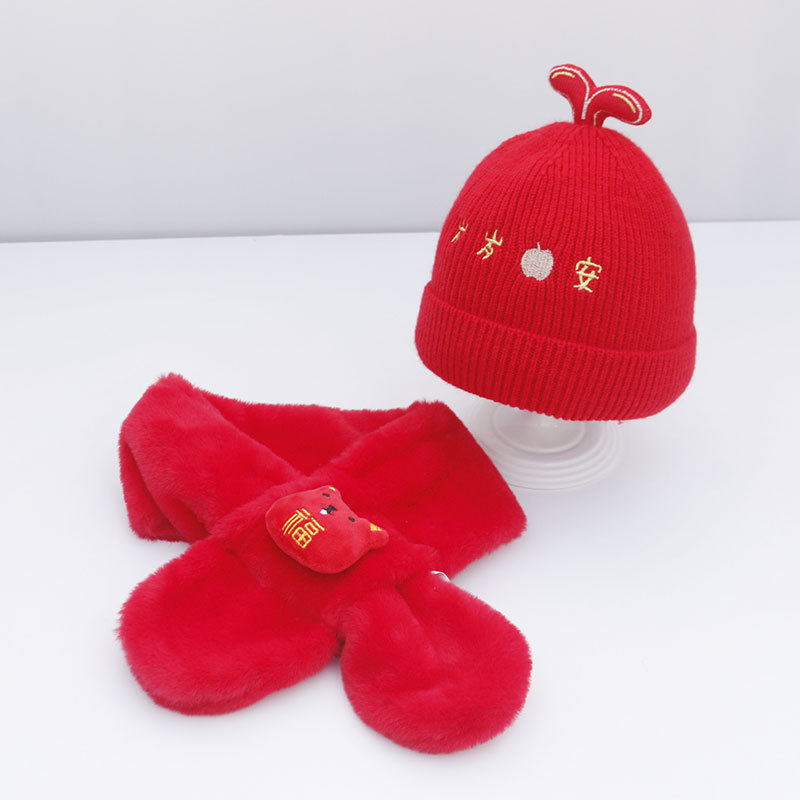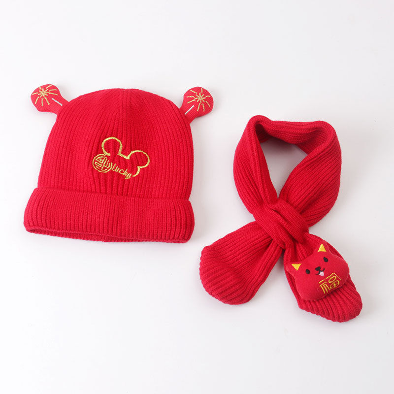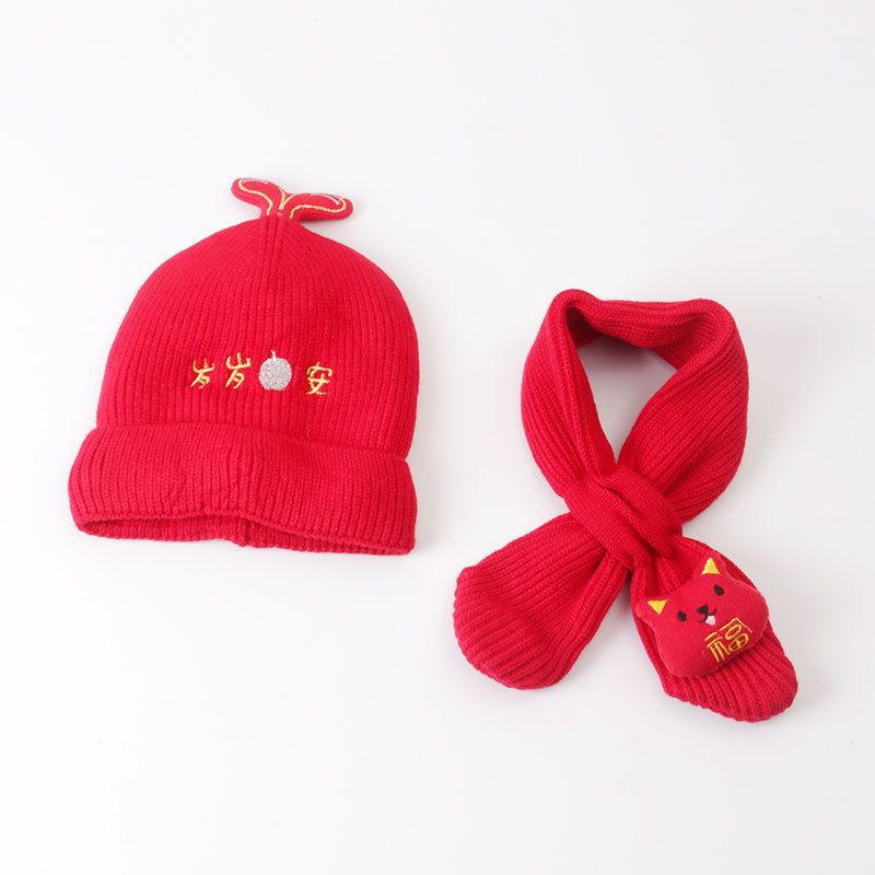 올해 겨울 두꺼워진 아기 모자 빨간 스카프 가을과 겨울 따뜻한 어린이 스카프 2 피스 2802-11