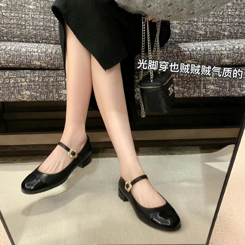 Xiaoxiang 스타일 동백 버클 벨트 두꺼운 굽 메리 제인 신발 여성용 2022 새로운 프랑스 색상 매칭 가죽 신발스토어 가기