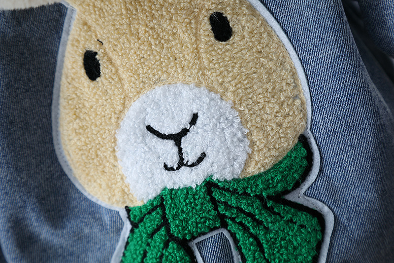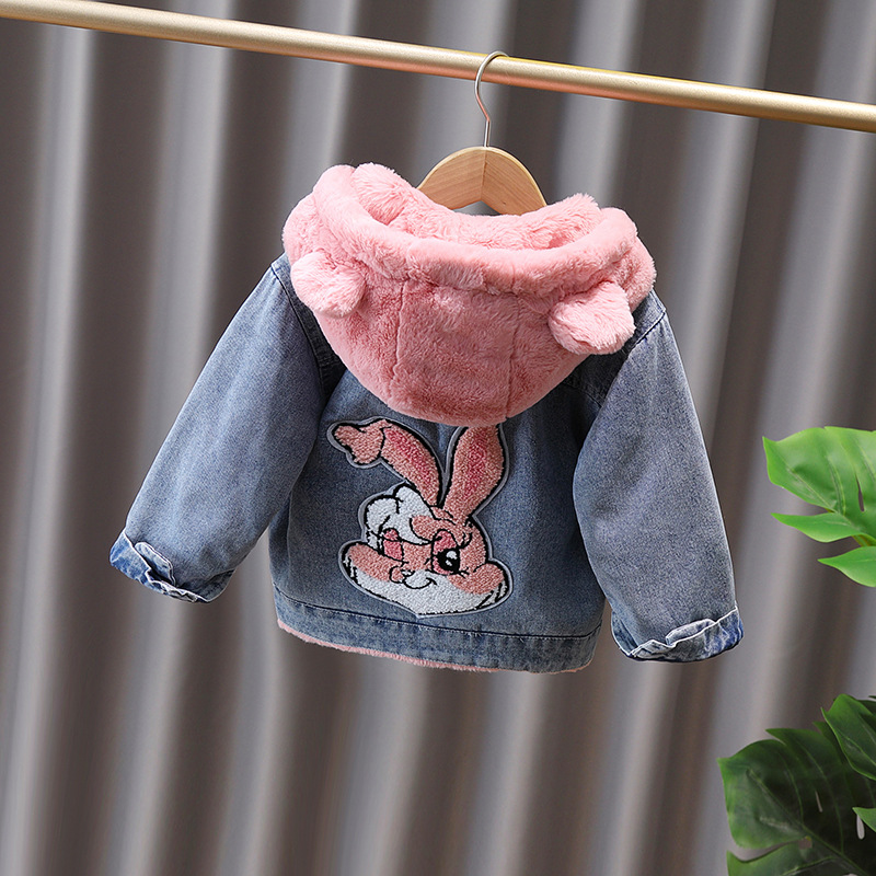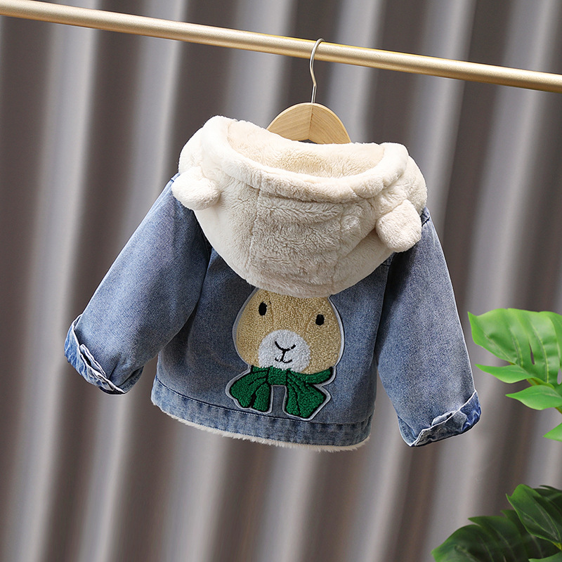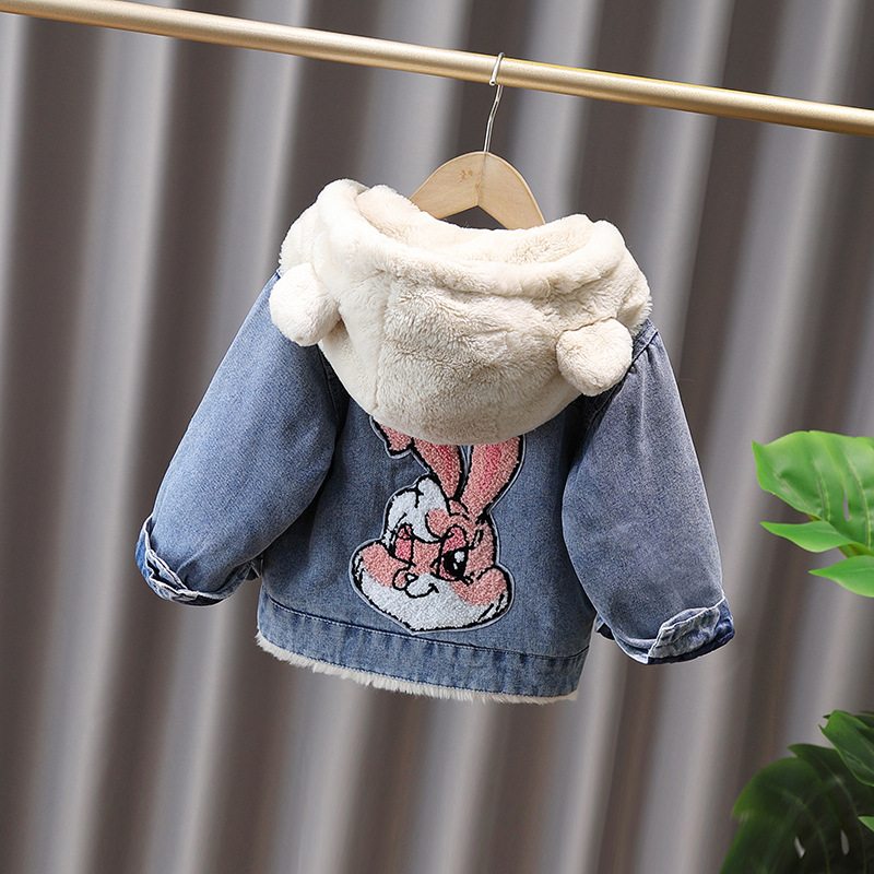 여아 가을과 겨울 기모 데님 코트 어린이 겨울 두꺼운 후드 데님 코트 대형 중소 어린이 베이비 탑