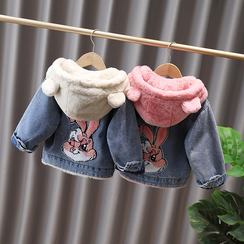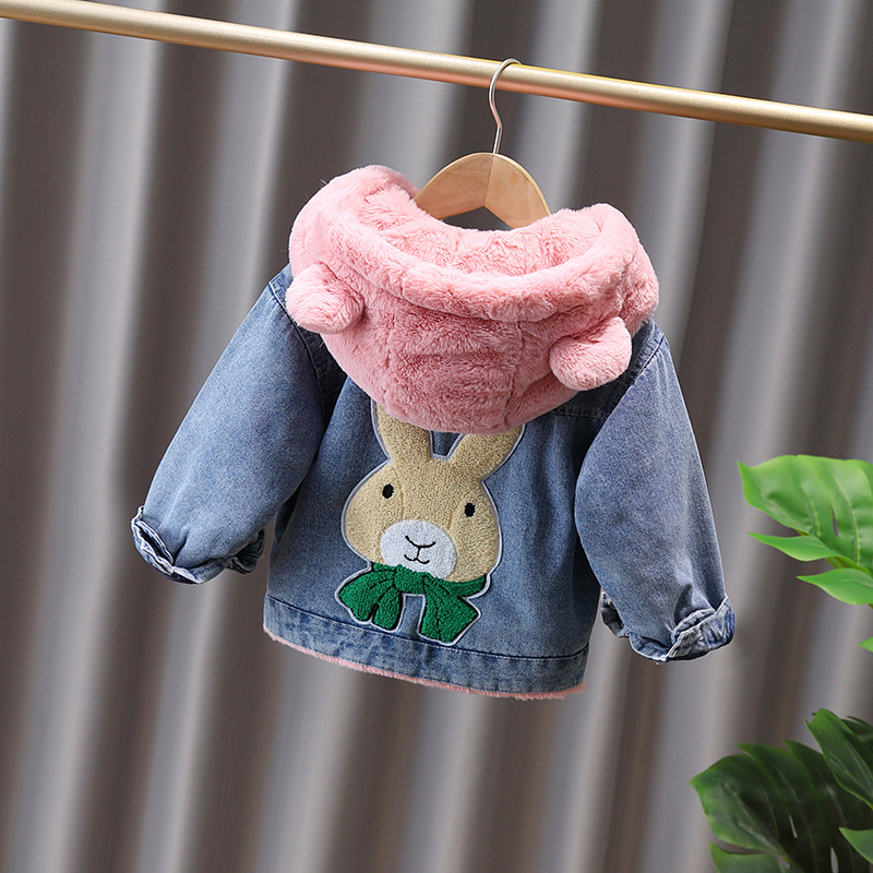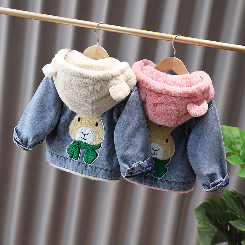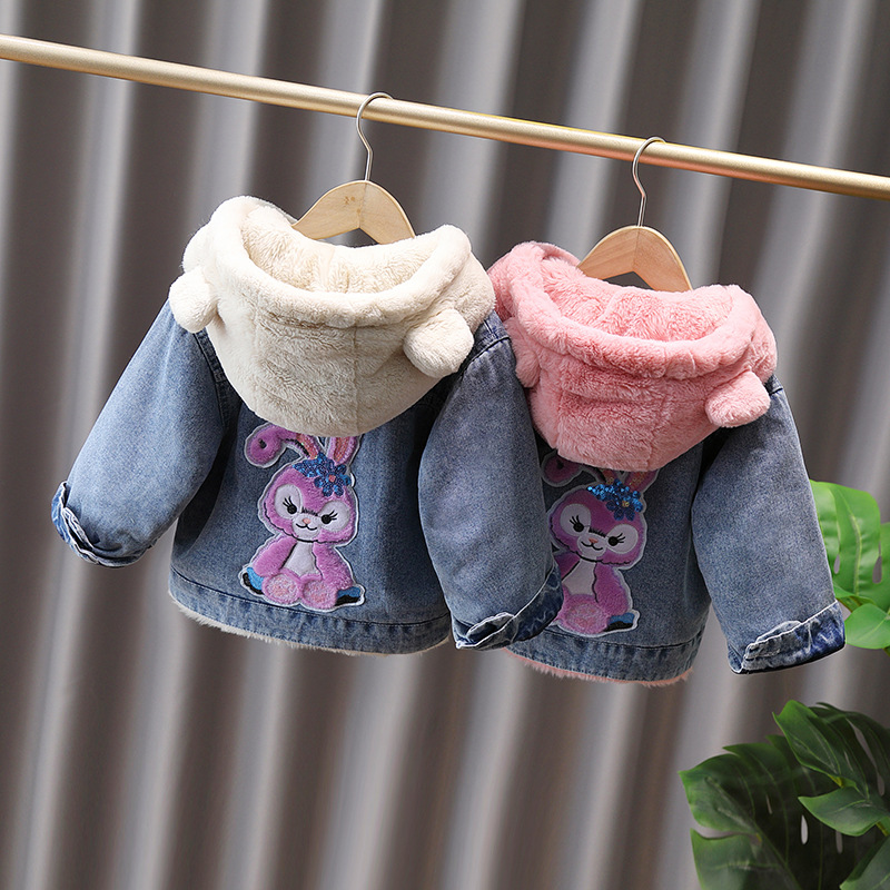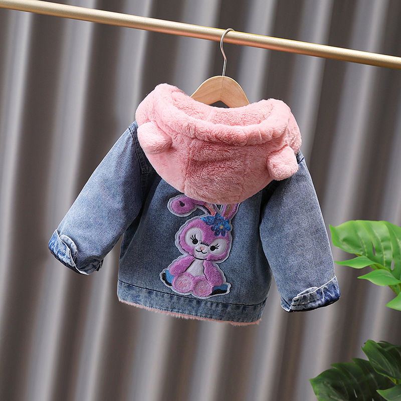 여아 가을과 겨울 기모 데님 코트 어린이 겨울 두꺼운 후드 데님 코트 대형 중소 어린이 베이비 탑스토어 가기