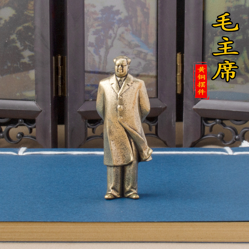 회장 마오 청동 동상 미니 휴대 평화 청동 동상 위인 마오 쩌둥 동상 작은 장식품 솔리드 전체 황동스토어 가기