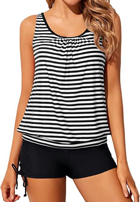 크로스 보더 여성용 허리 스플릿 수영복 2 피스 수영복 복서 반바지 적당히 느슨한 수영복