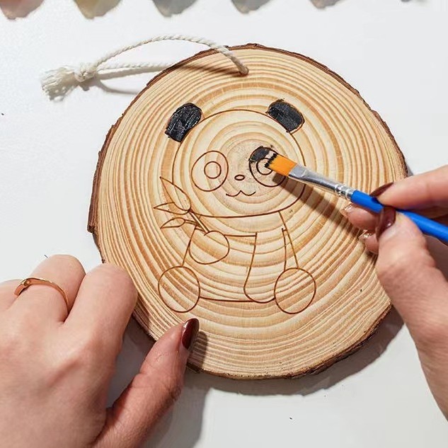 통나무 나무 조각 DIY 손 그림 재료 수제 유치원 장식 소나무 반지 우드 블록 원형 우드 칩 보드