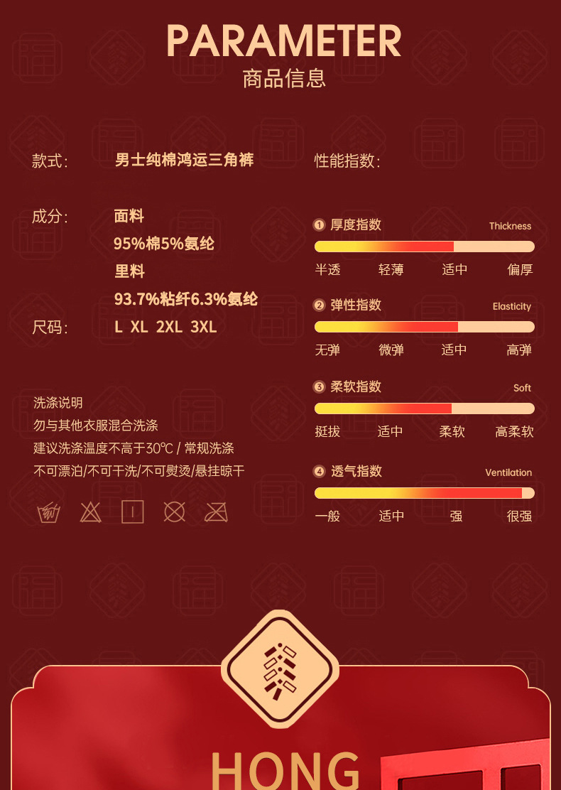 드래곤 Year Benmingnian 남자 브리프 면 항균 반바지 머리 섹시한 반바지 큰 빨간 결혼식 남자 속옷