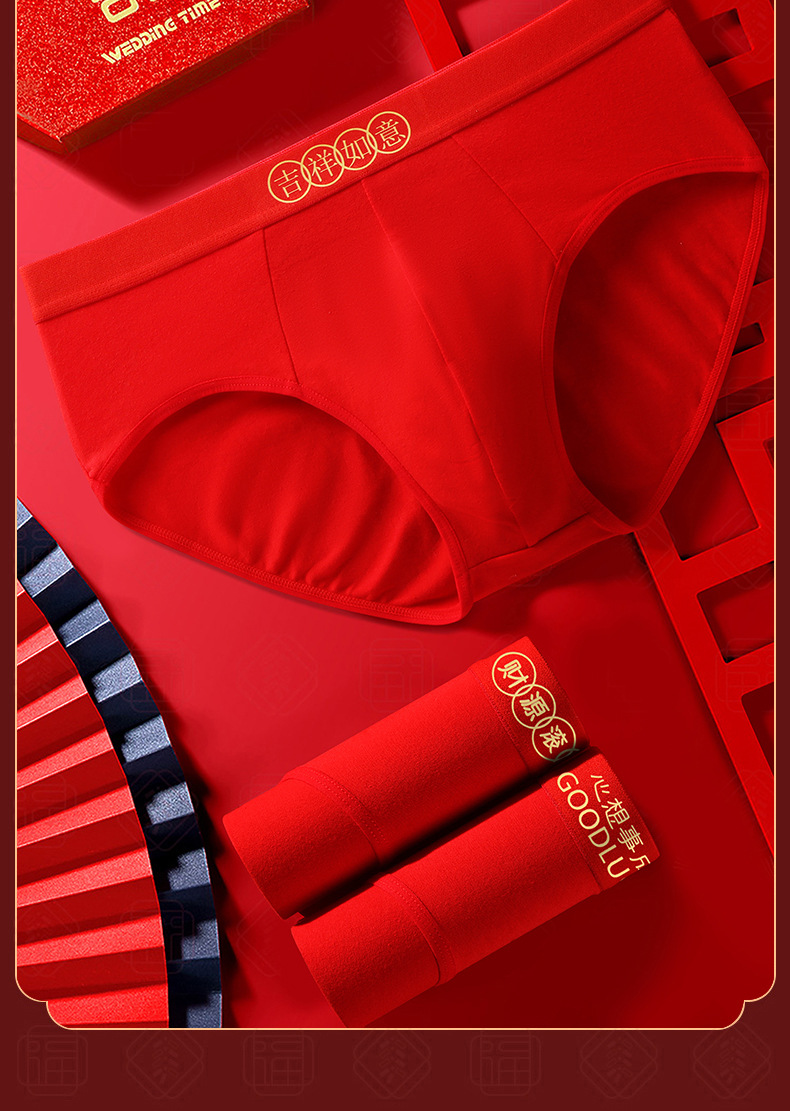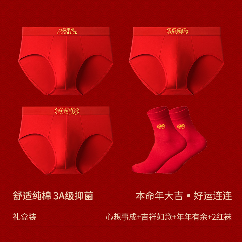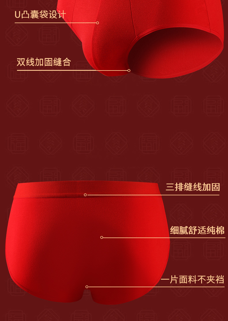 드래곤 Year Benmingnian 남자 브리프 면 항균 반바지 머리 섹시한 반바지 큰 빨간 결혼식 남자 속옷스토어 가기