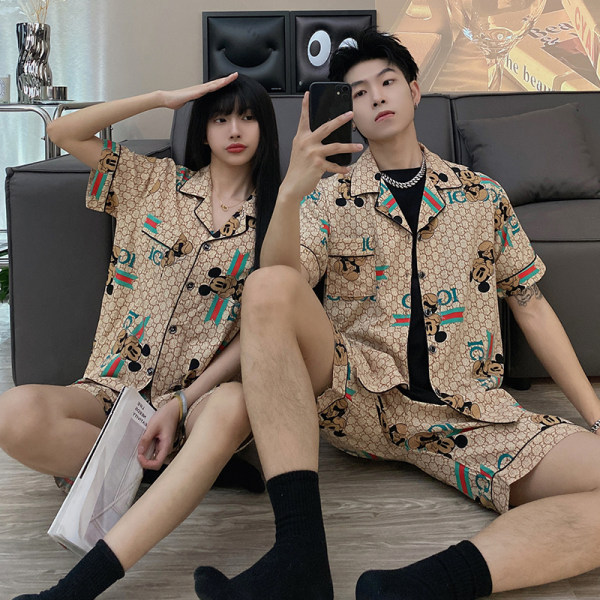 틱톡에서 판매하는 여름용 만화 캐릭터 남녀 커플 잠옷, 아이스 실크 투피스 세트, 홈웨어, 실내 레저복