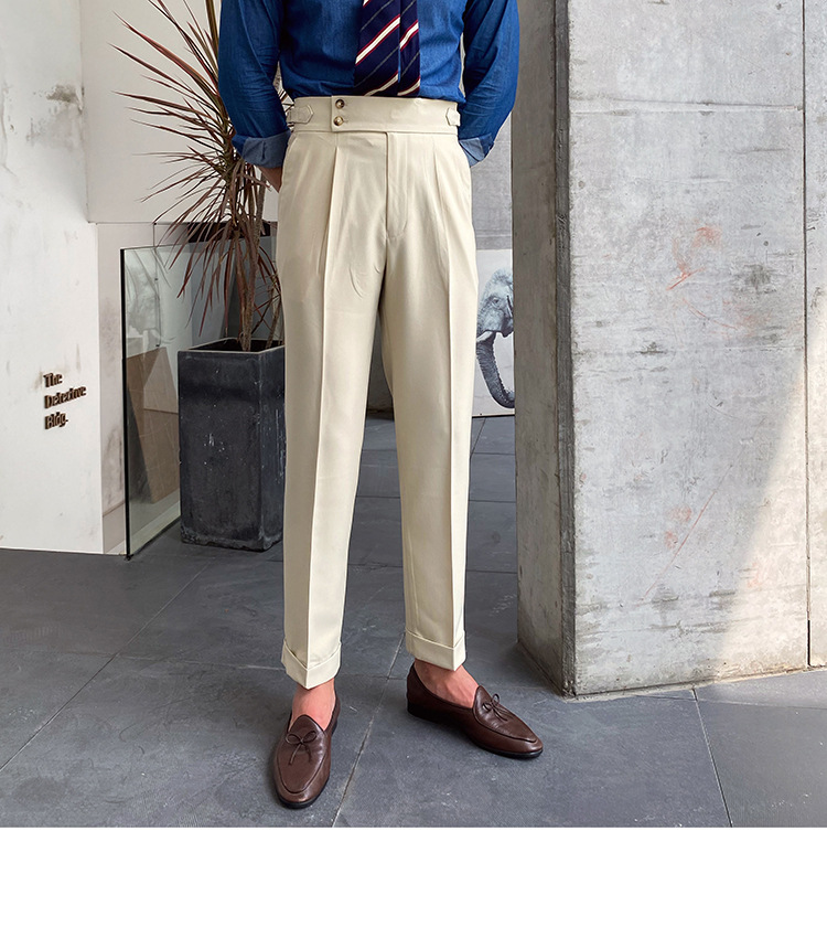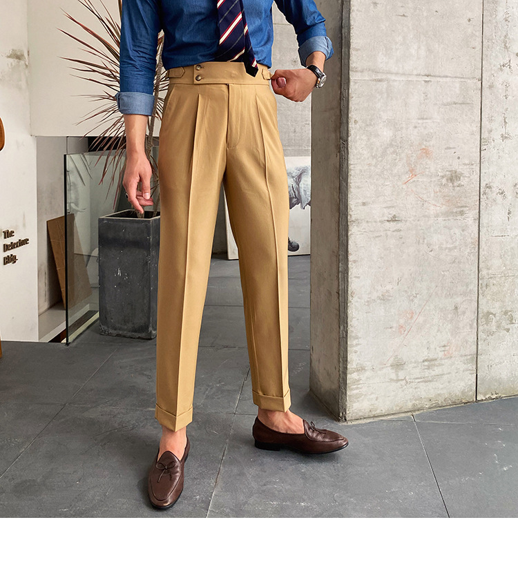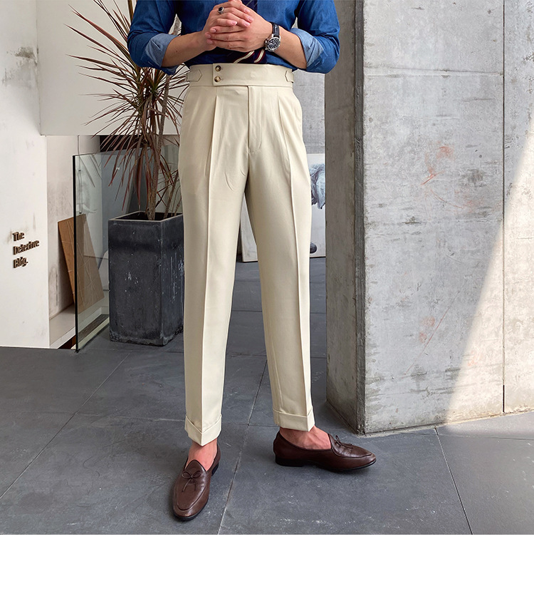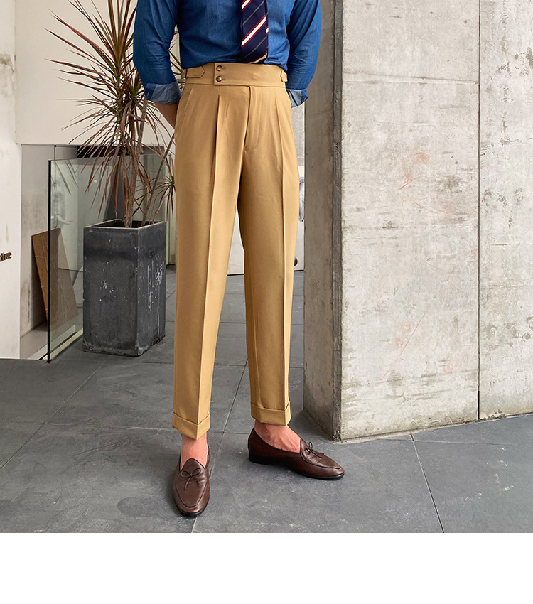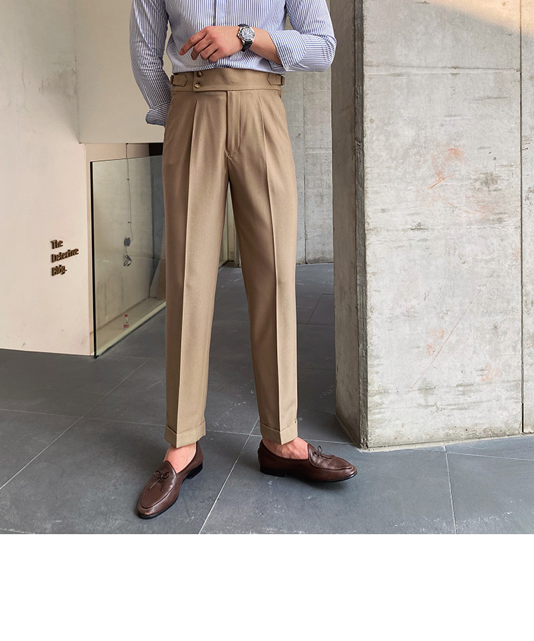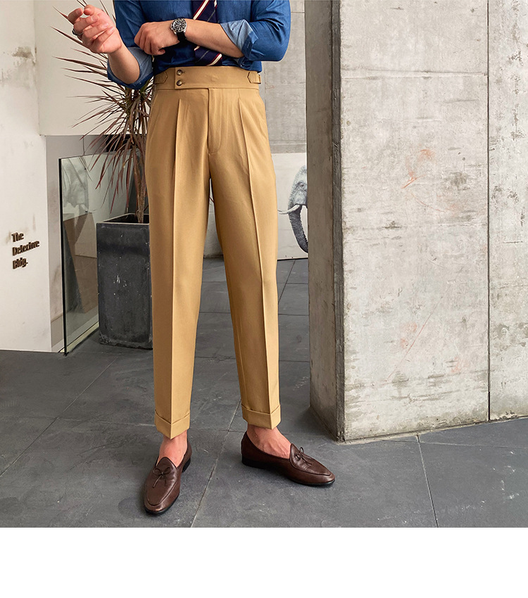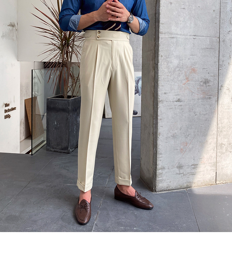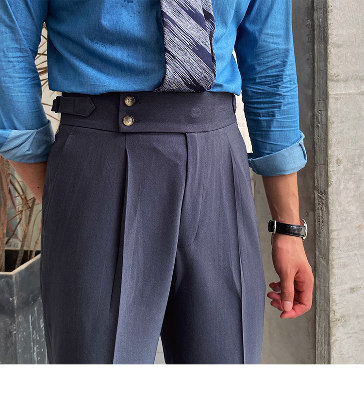 2022 새로운 수제 남성 나폴리 영국 스타일 하이 웨이스트 스트레이트 팬츠 가을 캐주얼 트렌디 바지
