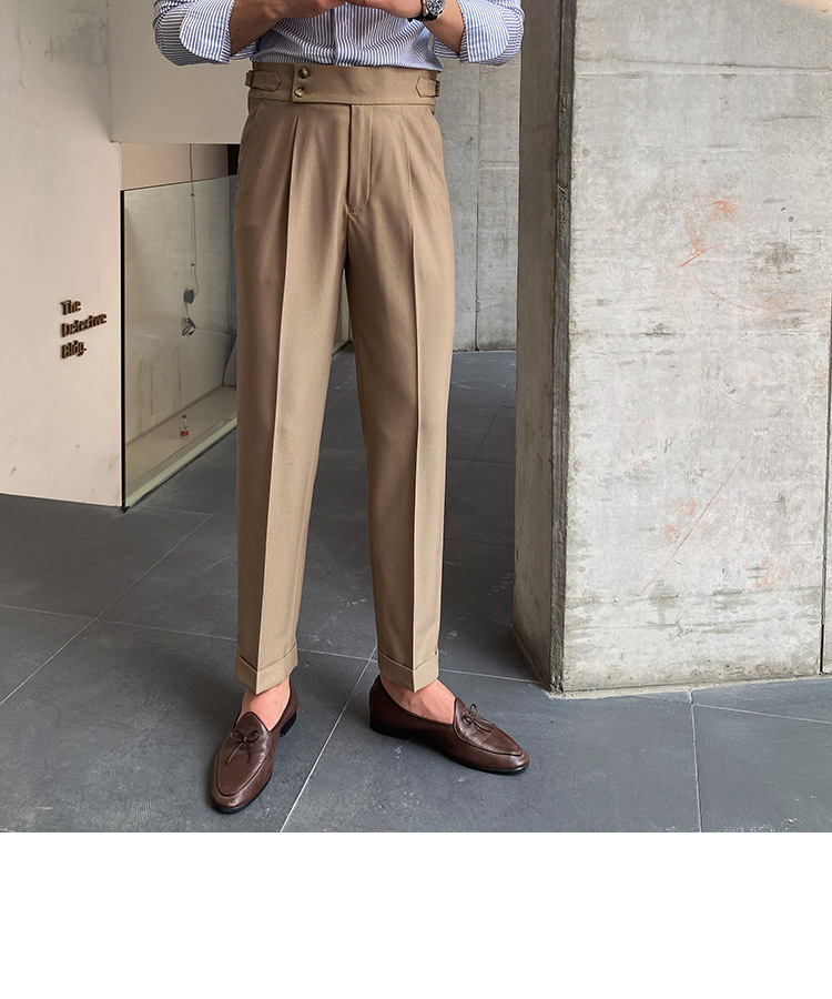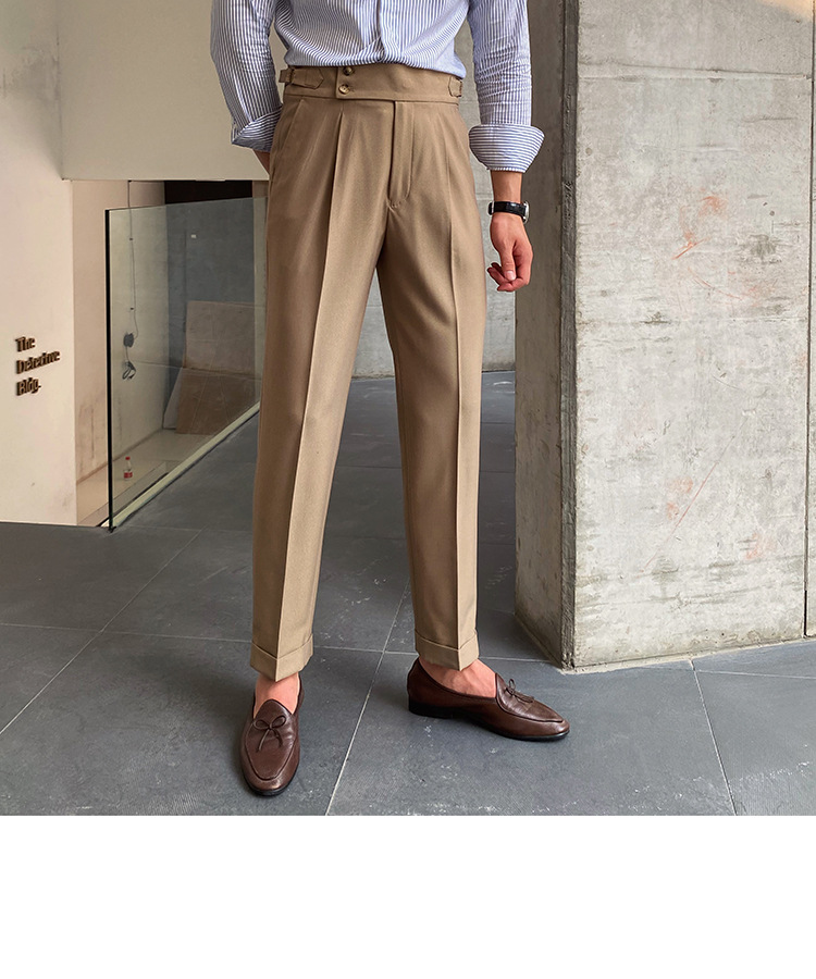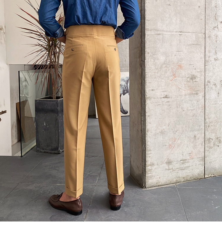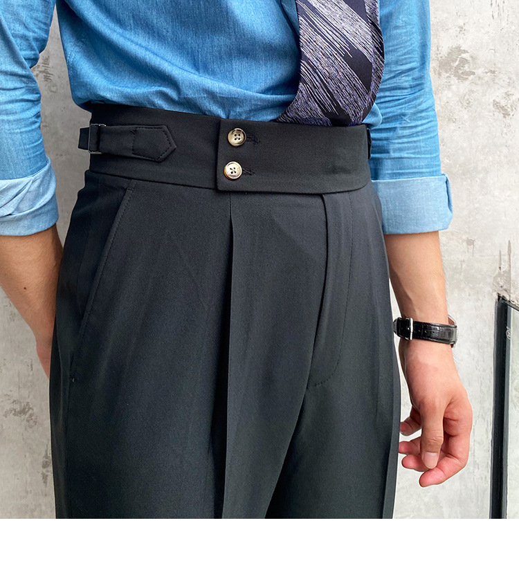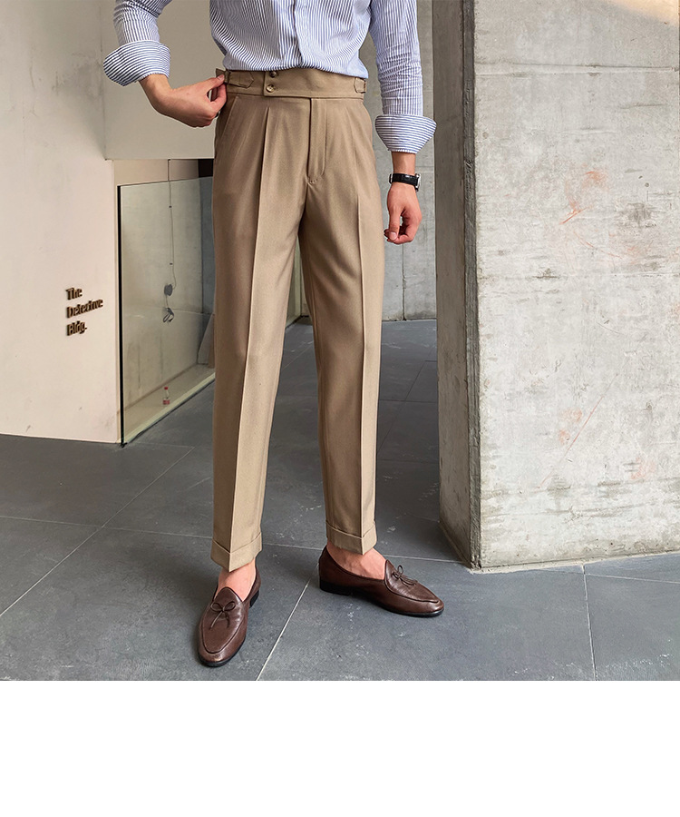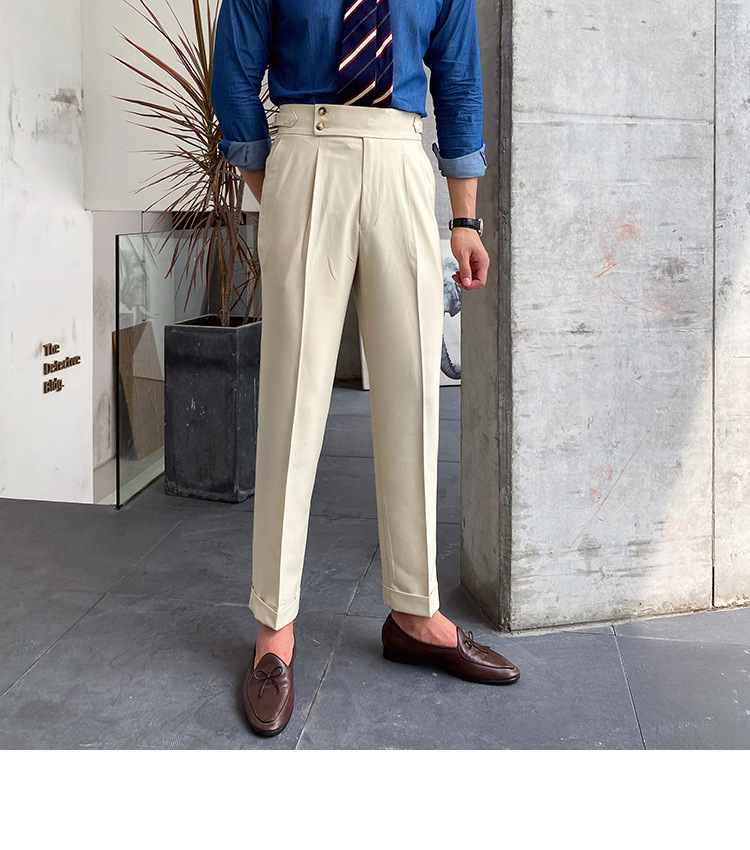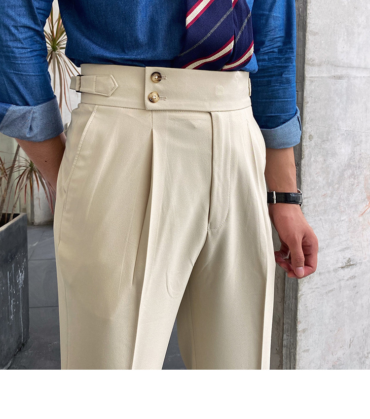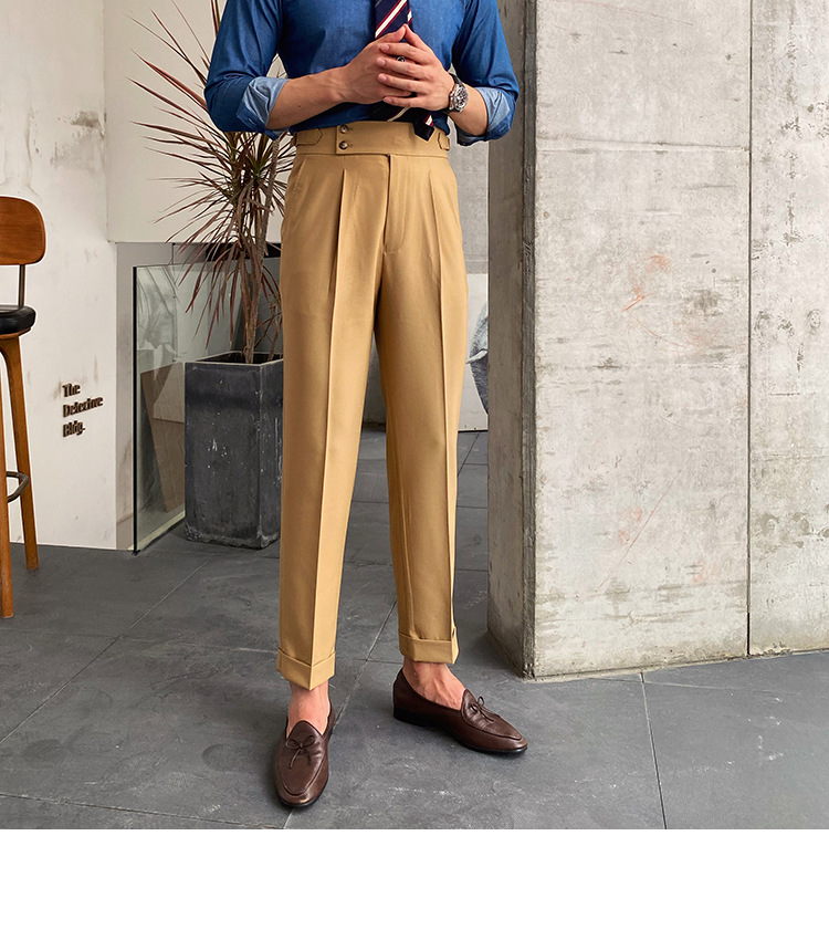 2022 새로운 수제 남성 나폴리 영국 스타일 하이 웨이스트 스트레이트 팬츠 가을 캐주얼 트렌디 바지