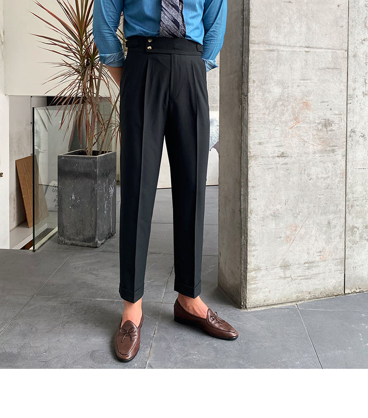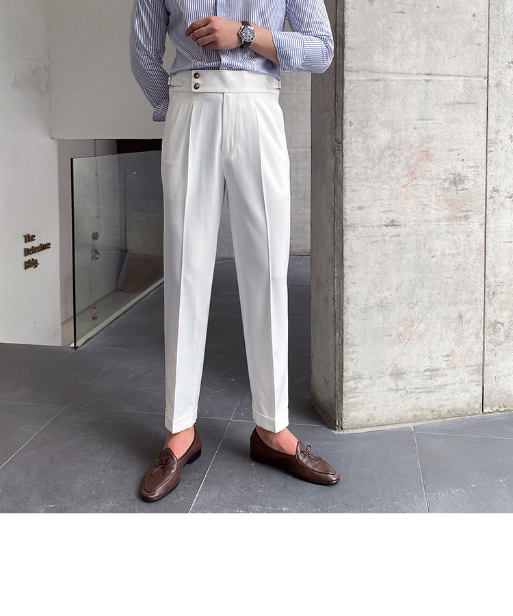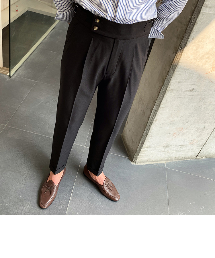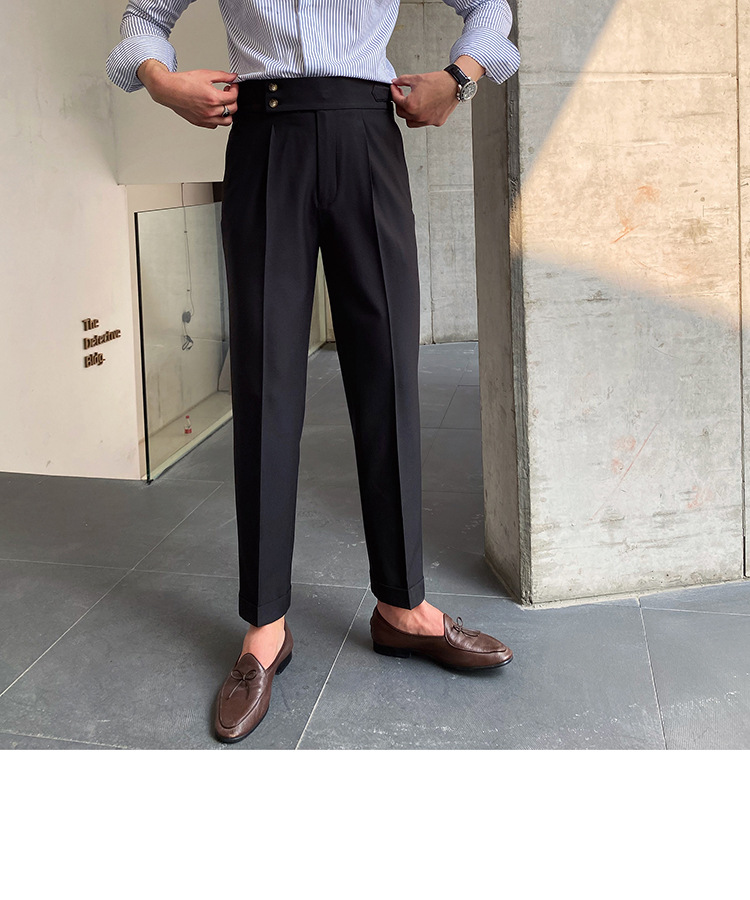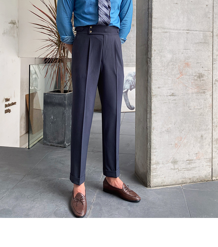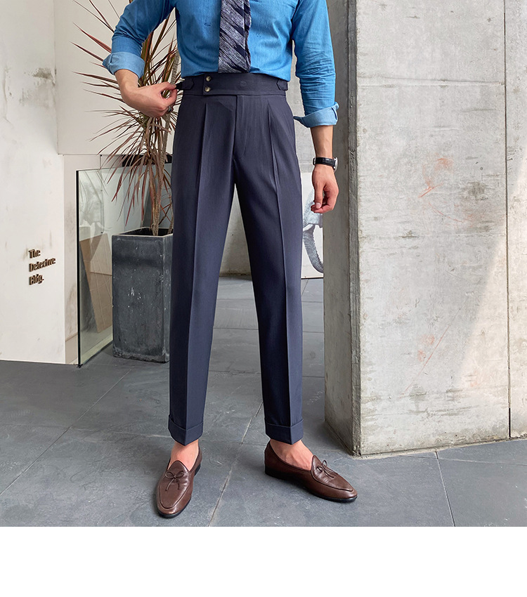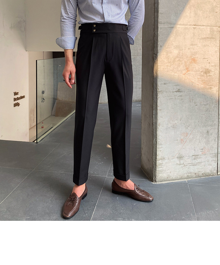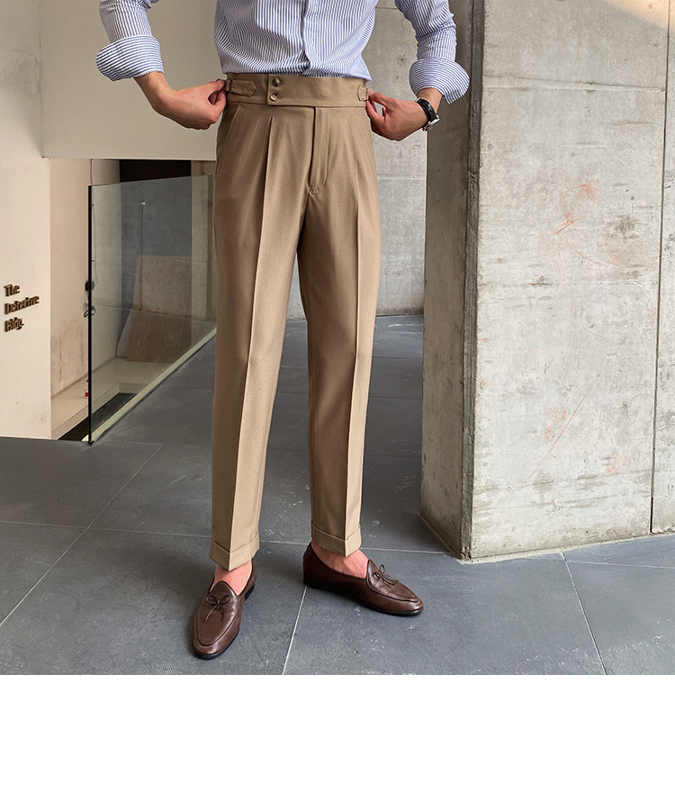 2022 새로운 수제 남성 나폴리 영국 스타일 하이 웨이스트 스트레이트 팬츠 가을 캐주얼 트렌디 바지