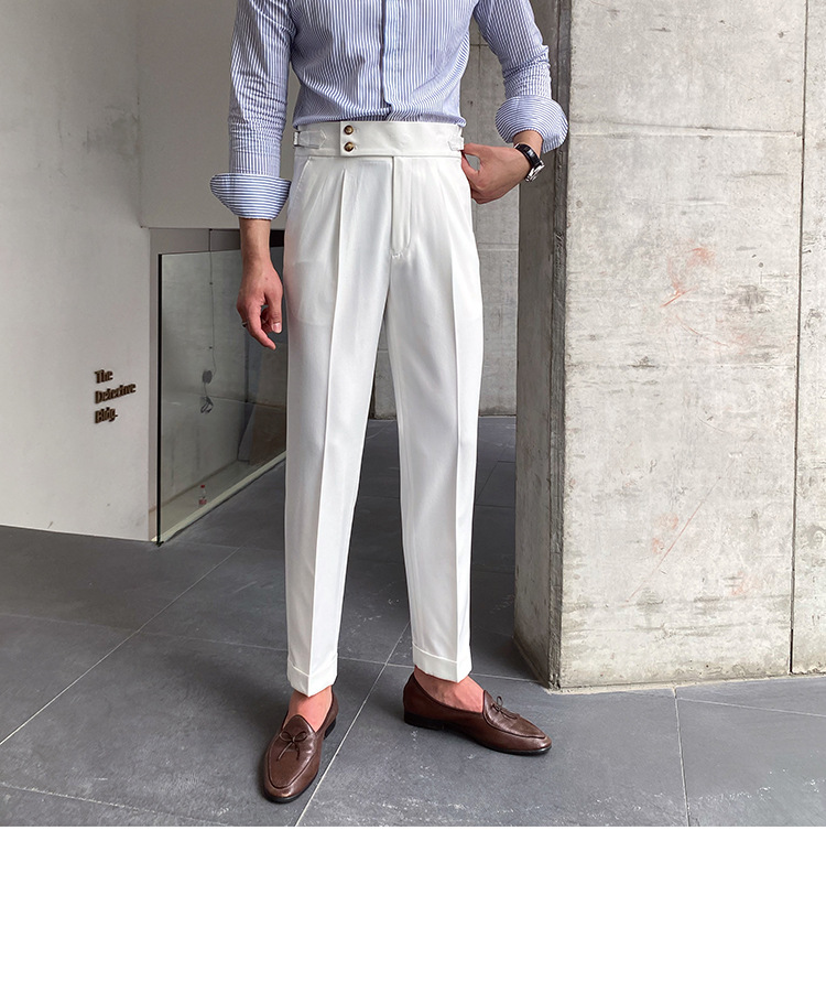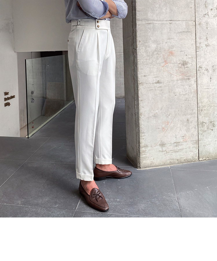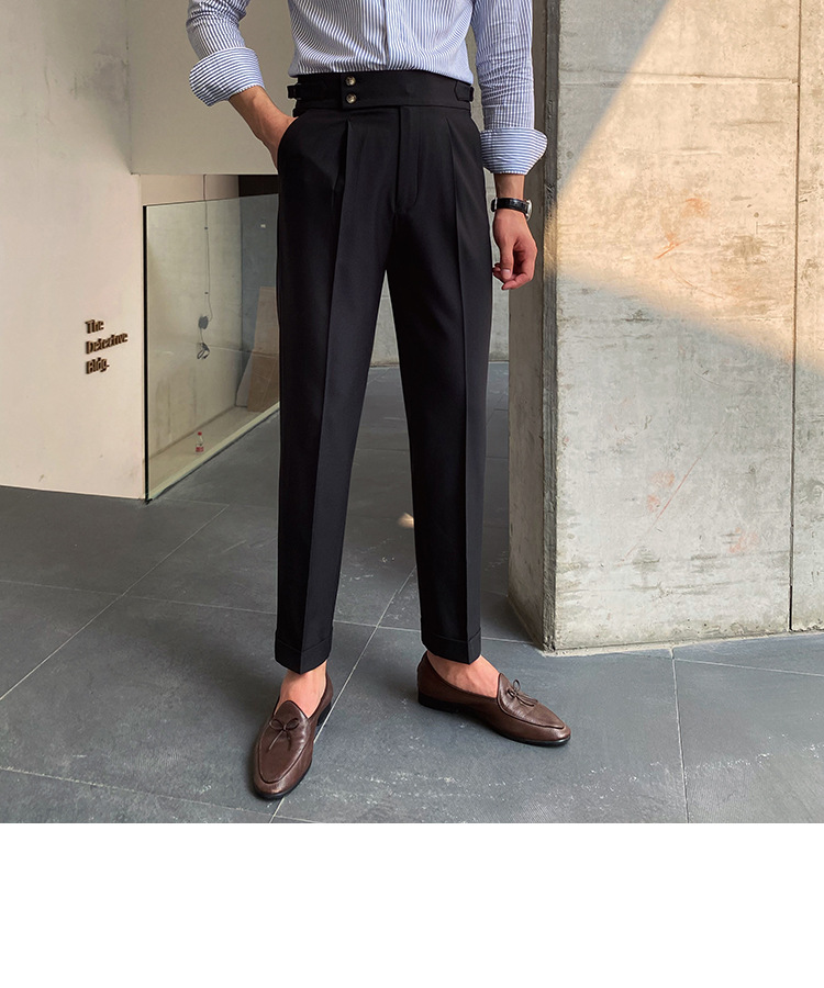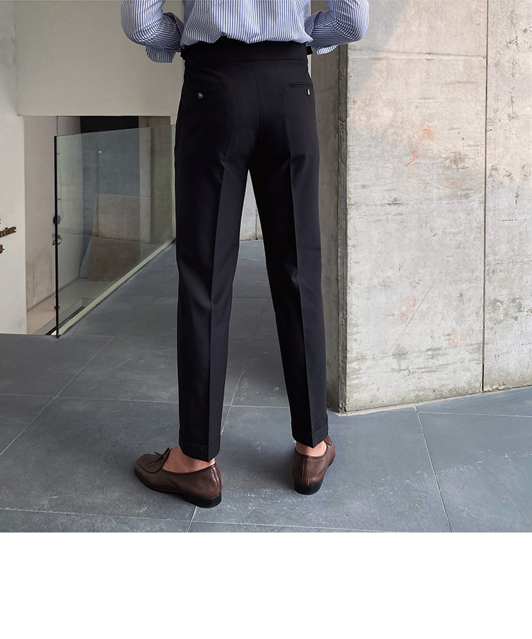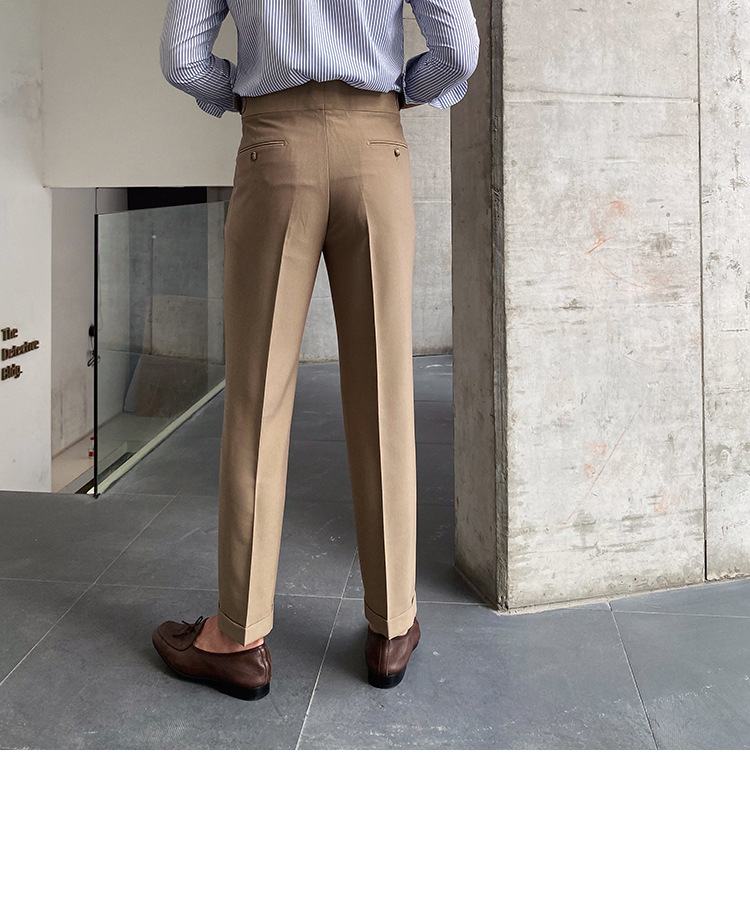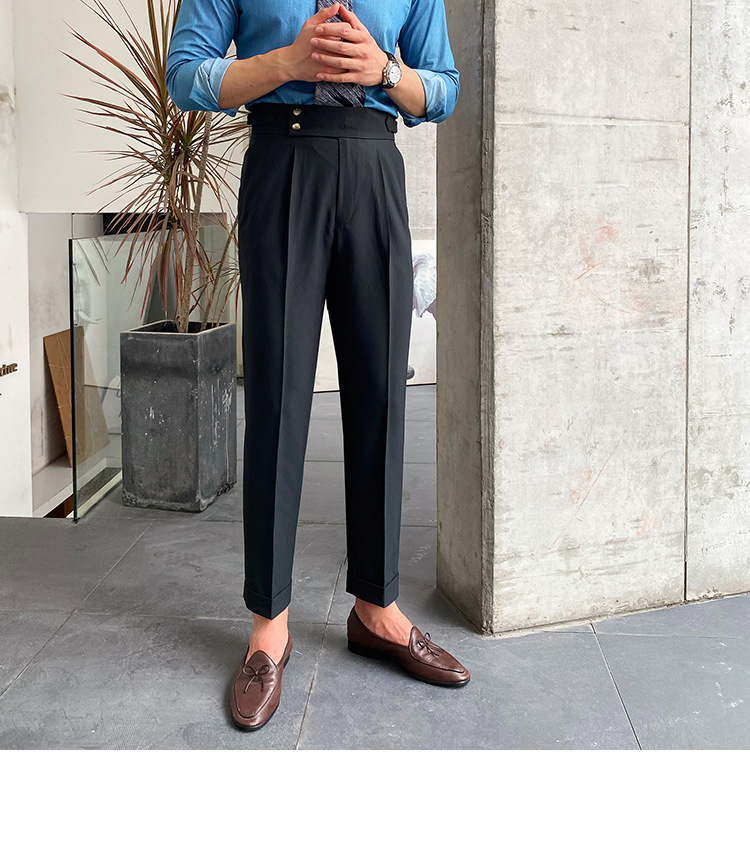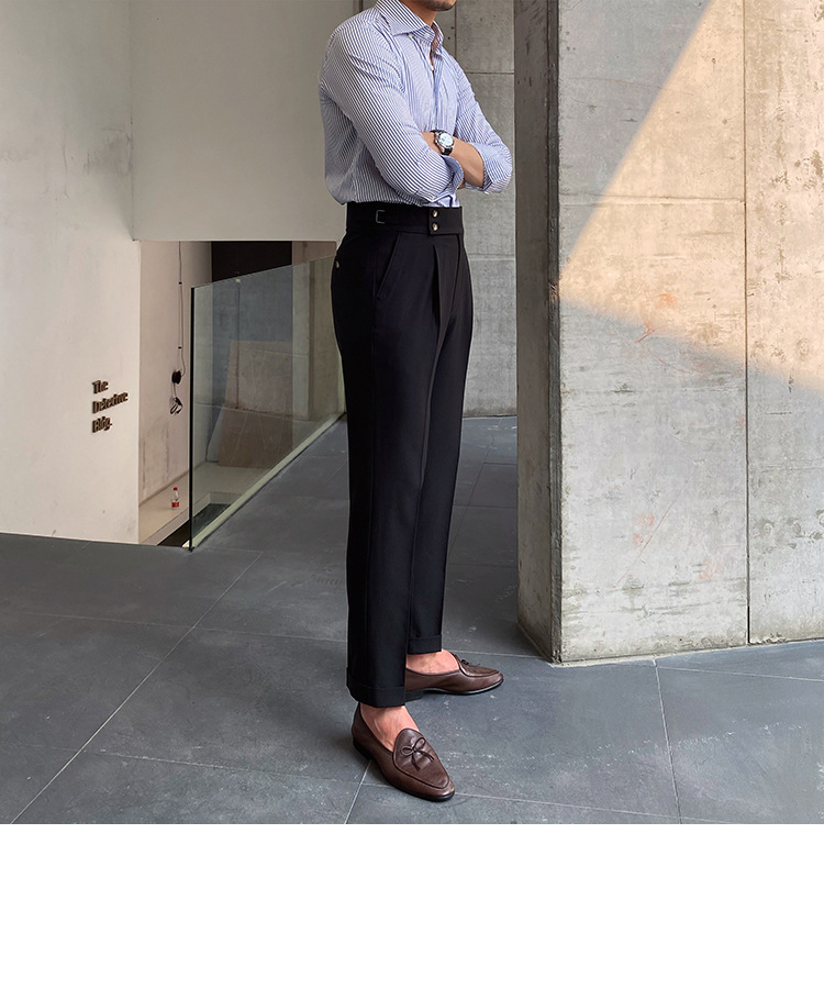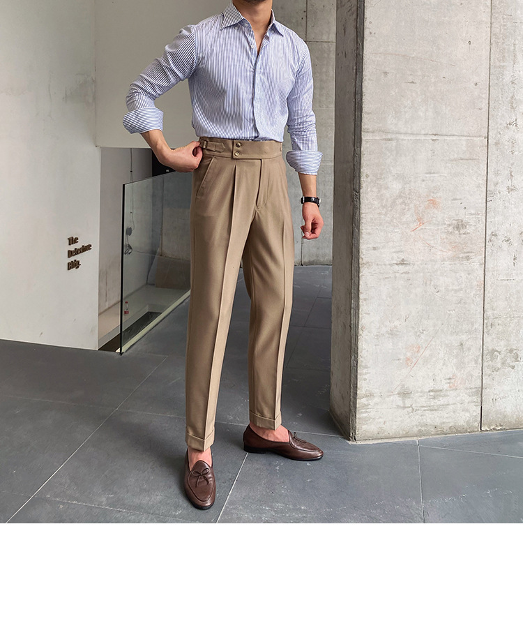 2022 새로운 수제 남성 나폴리 영국 스타일 하이 웨이스트 스트레이트 팬츠 가을 캐주얼 트렌디 바지