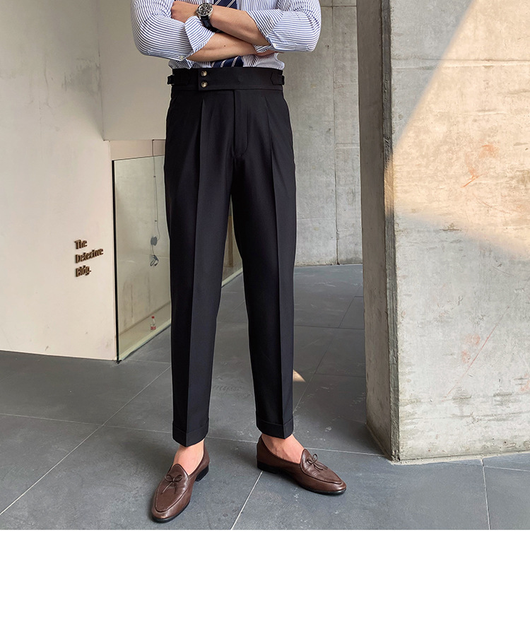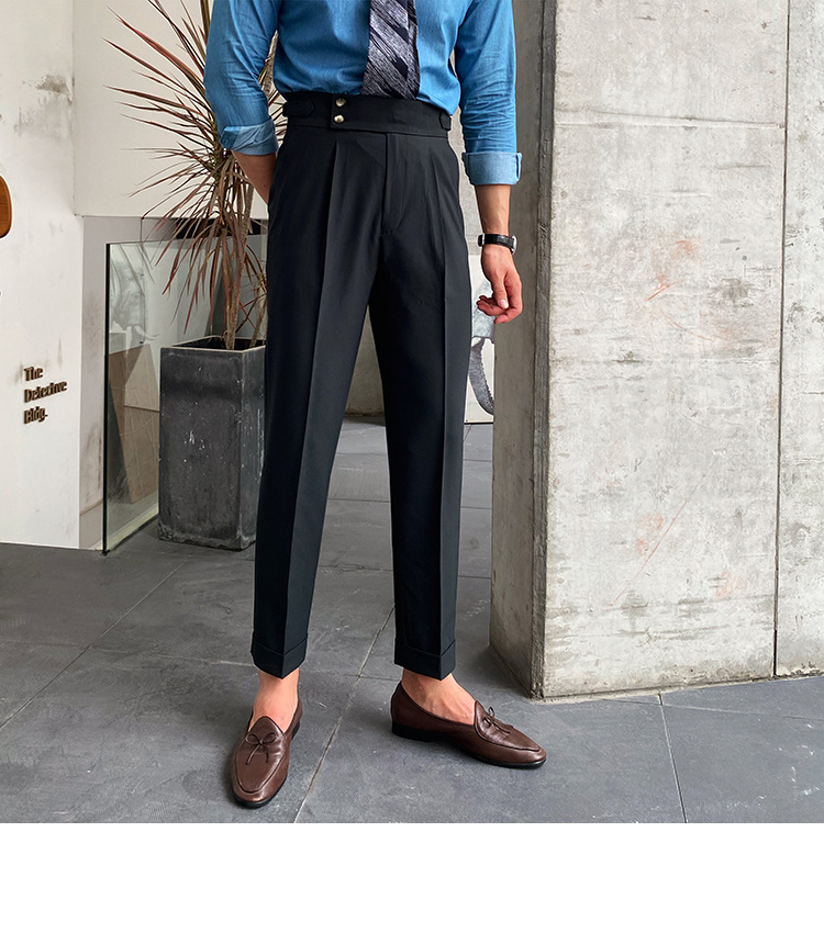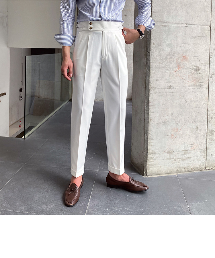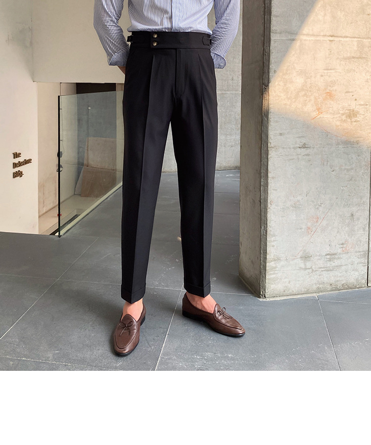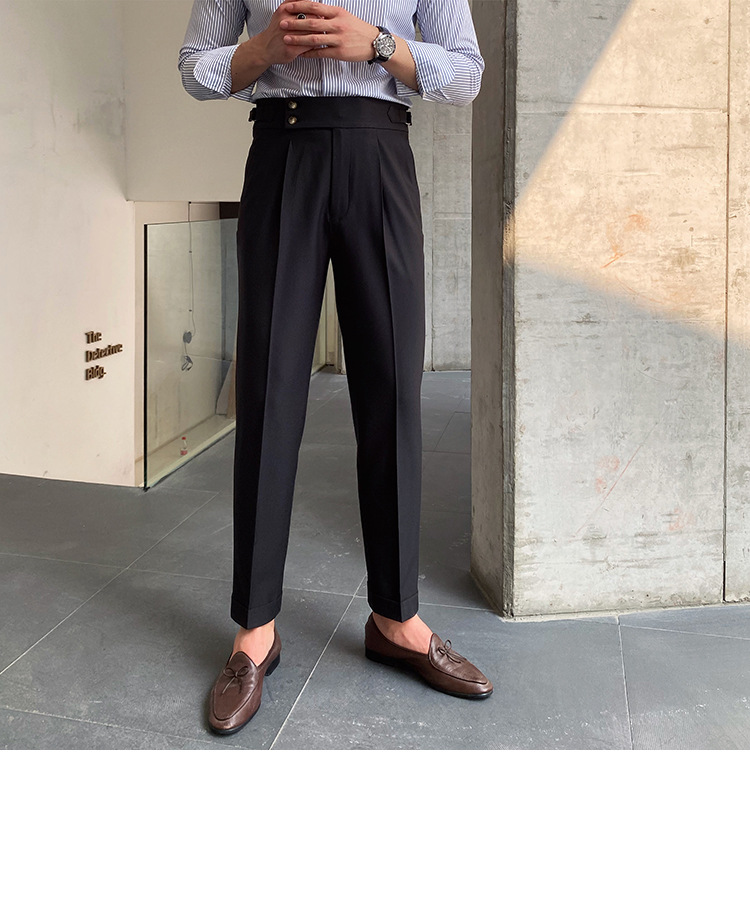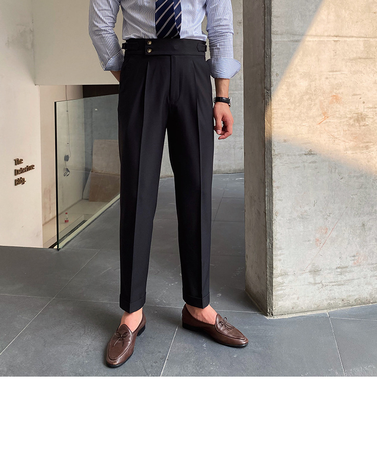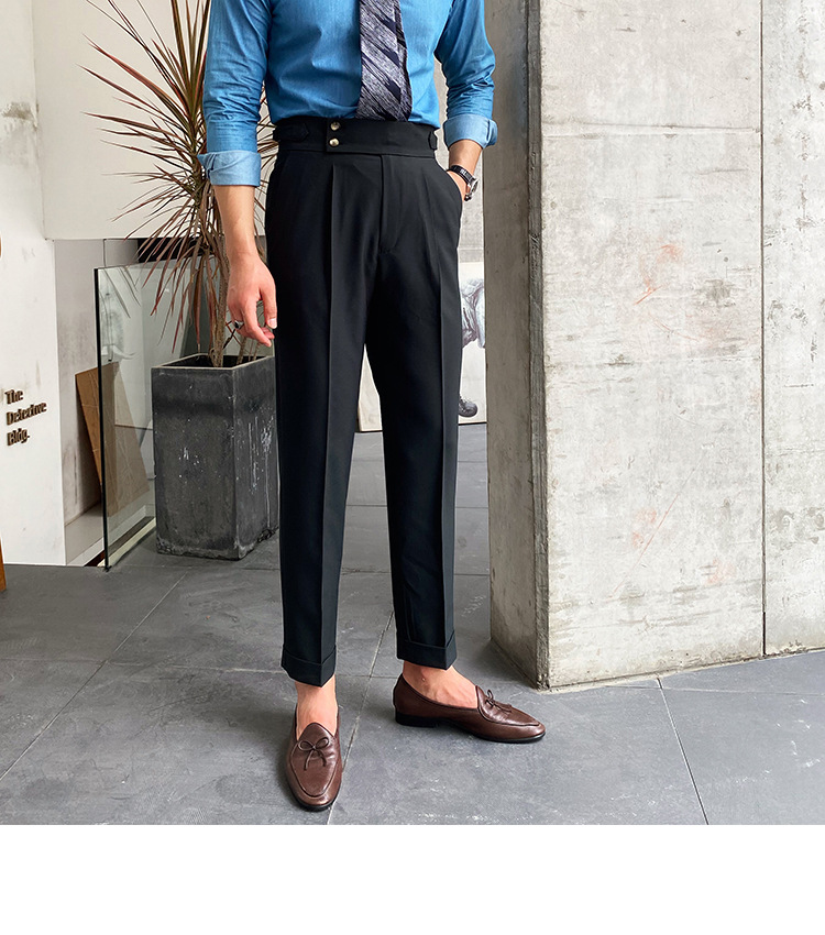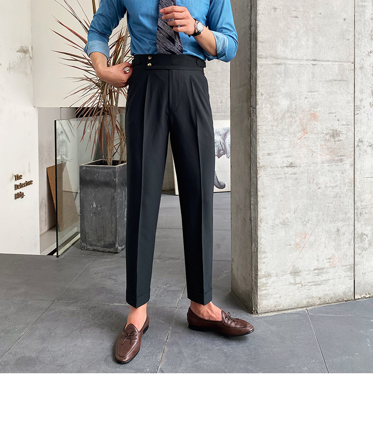 2022 새로운 수제 남성 나폴리 영국 스타일 하이 웨이스트 스트레이트 팬츠 가을 캐주얼 트렌디 바지