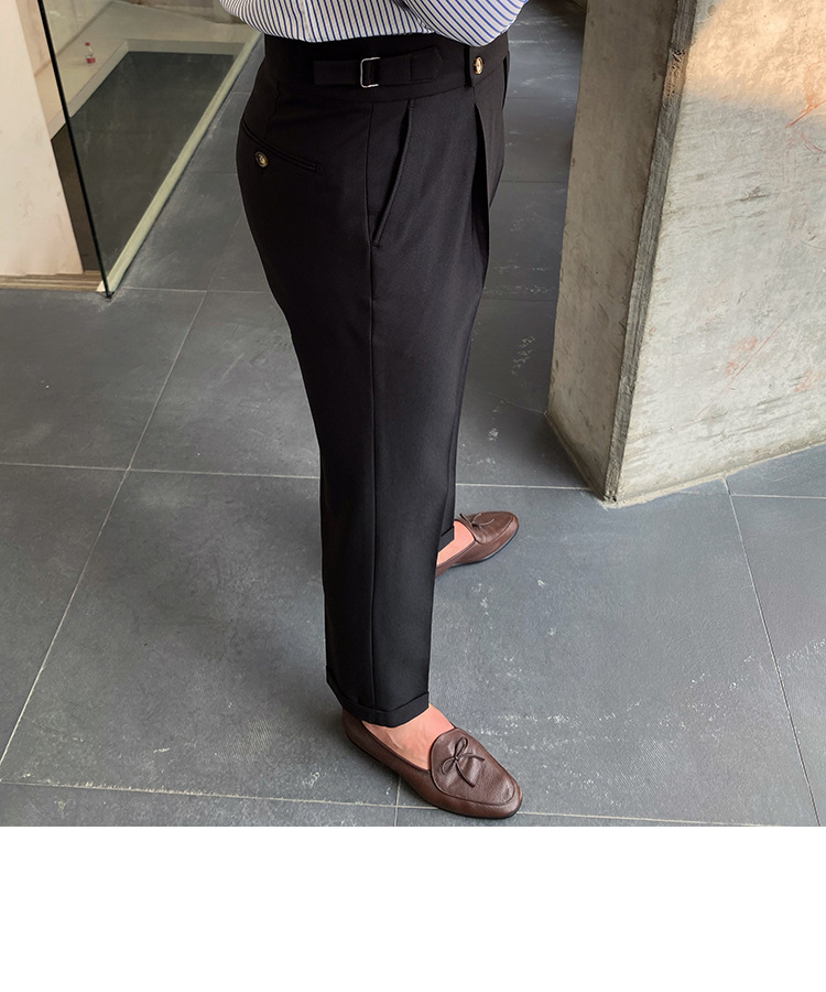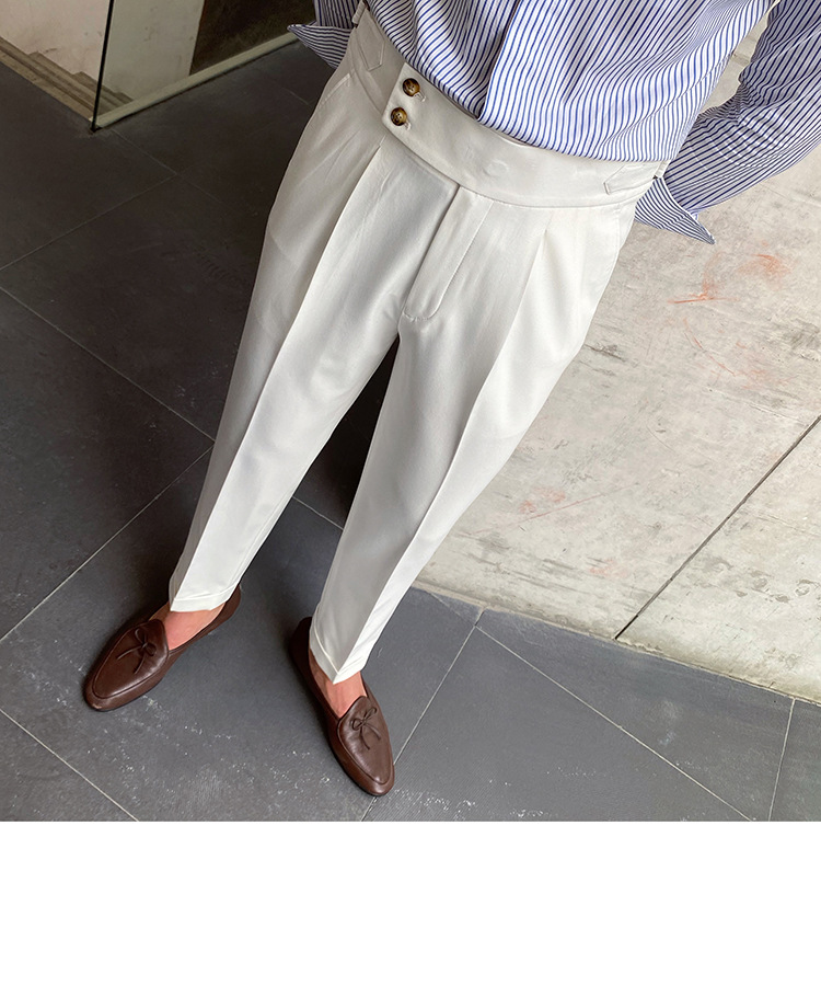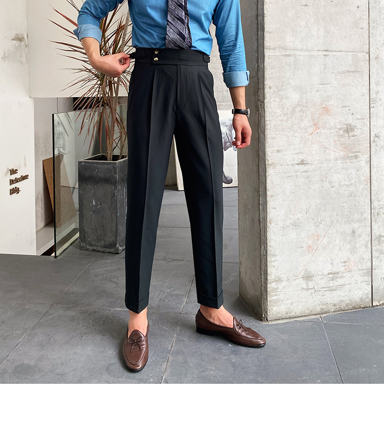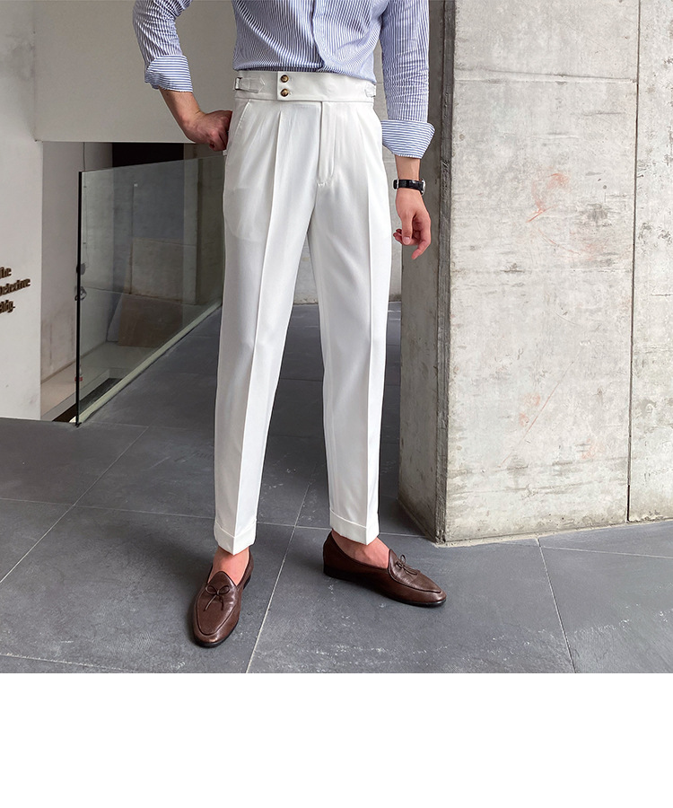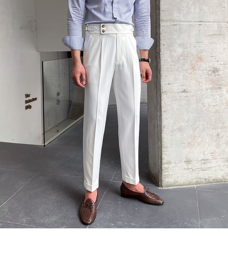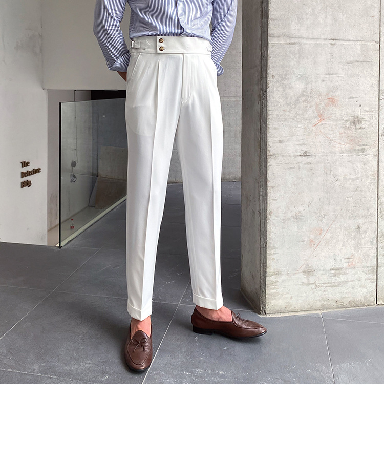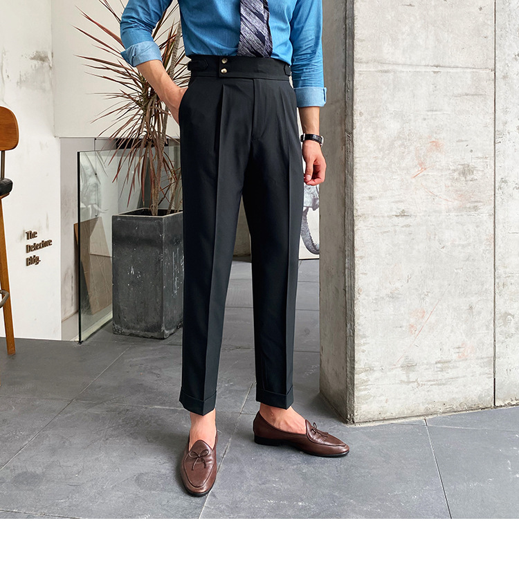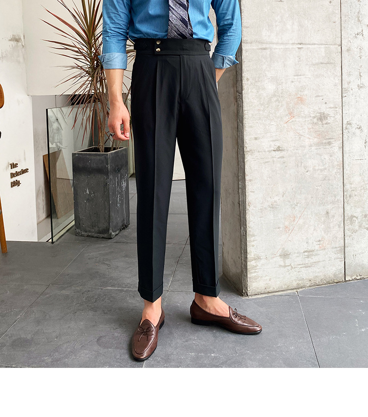 2022 새로운 수제 남성 나폴리 영국 스타일 하이 웨이스트 스트레이트 팬츠 가을 캐주얼 트렌디 바지